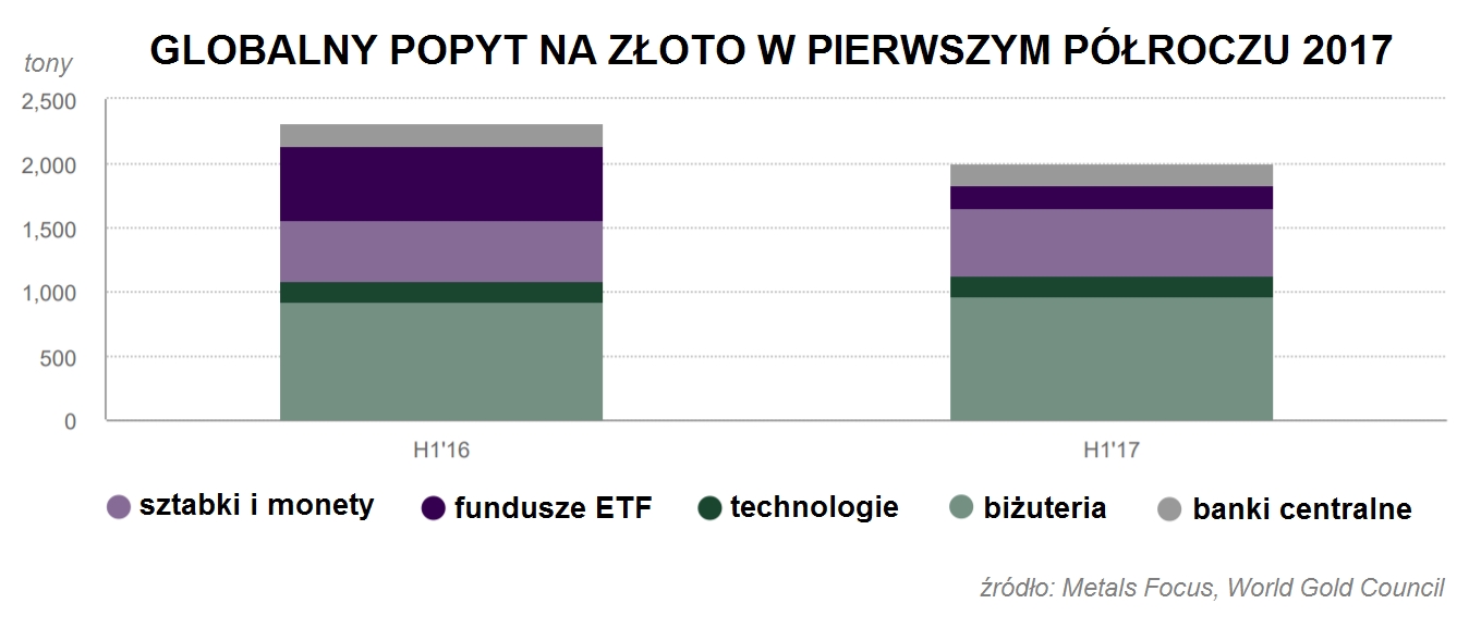 Analizując te dane eksperci zwracają jednak uwagę na wyjątkowo wysokie wyniki w porównywanym okresie roku ubiegłego, kiedy cena metalu i napięcia geopolityczne szczególne zachęcały inwestorów do lokowania kapitału w bezpieczne aktywa. Tym bardziej powinien zainteresować więc fakt, że nawet w zestawieniu z H1 2016 popyt na złoto w formie sztabek i monet inwestycyjnych znów wzrósł.