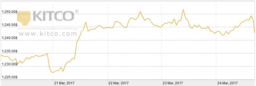 Miniony tydzień zaczął się dla złota stosunkowo korzystnie, a to za sprawą dolara, który na fali protekcjonistycznych komentarzy Amerykanów na szczycie G20 spadł do najniższego poziomu od sześciu tygodni. Rynki były przy tym dość niestabilne ze względu na komentarz dyrektora FBI, Jamesa  Comey’a, który w poniedziałek potwierdził, że agencja prowadzi śledztwo w sprawie możliwości rosyjskiej ingerencji w ostatnie wybory prezydenckie w USA.