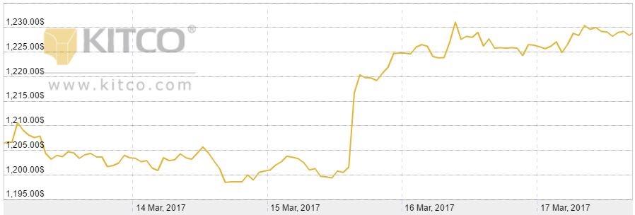 Środa przyniosła zaś odpowiedź, której wszyscy się spodziewali, i która wg wielu analityków została już wkalkulowana w cenę kruszcu. Fed podniósł stopy o 25 pkt. bazowych i ostrożnie zapowiedział dalsze podwyżki, które miałyby być stopniowo (do trzech rocznie) wprowadzane w najbliższych latach.