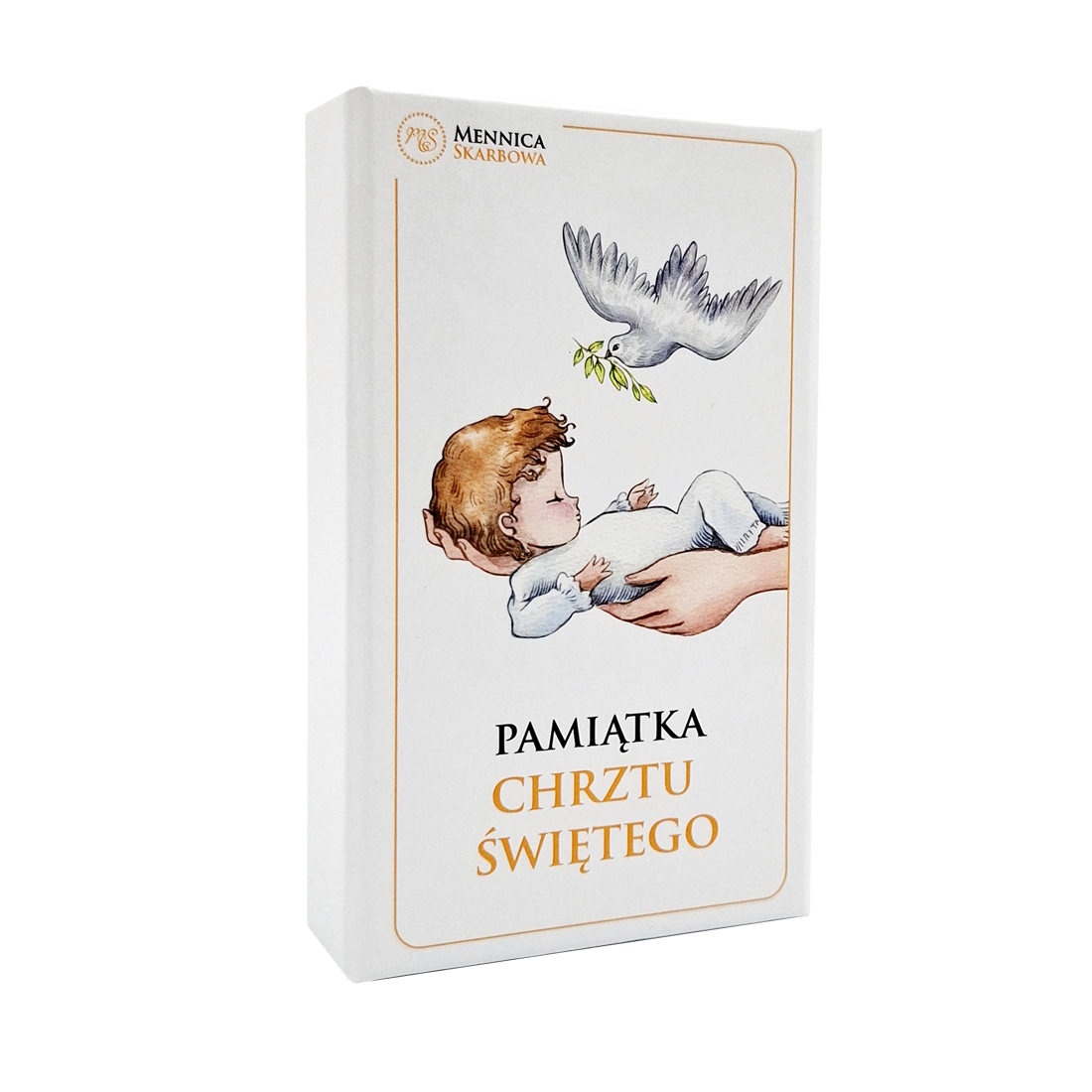 Biała kolorystyka etui z delikatną grafiką okolicznościową idealnie współgra z symboliką Chrztu Świętego. Estetyczny nadruk nadaje prezentowi indywidualnego charakteru, odróżniając go od standardowych opakowań inwestycyjnych. Funkcjonalne zamknięcie na magnes sprawia, że etui jest bezpieczne, a jednocześnie łatwe do otwarcia, by móc podziwiać zawartość.