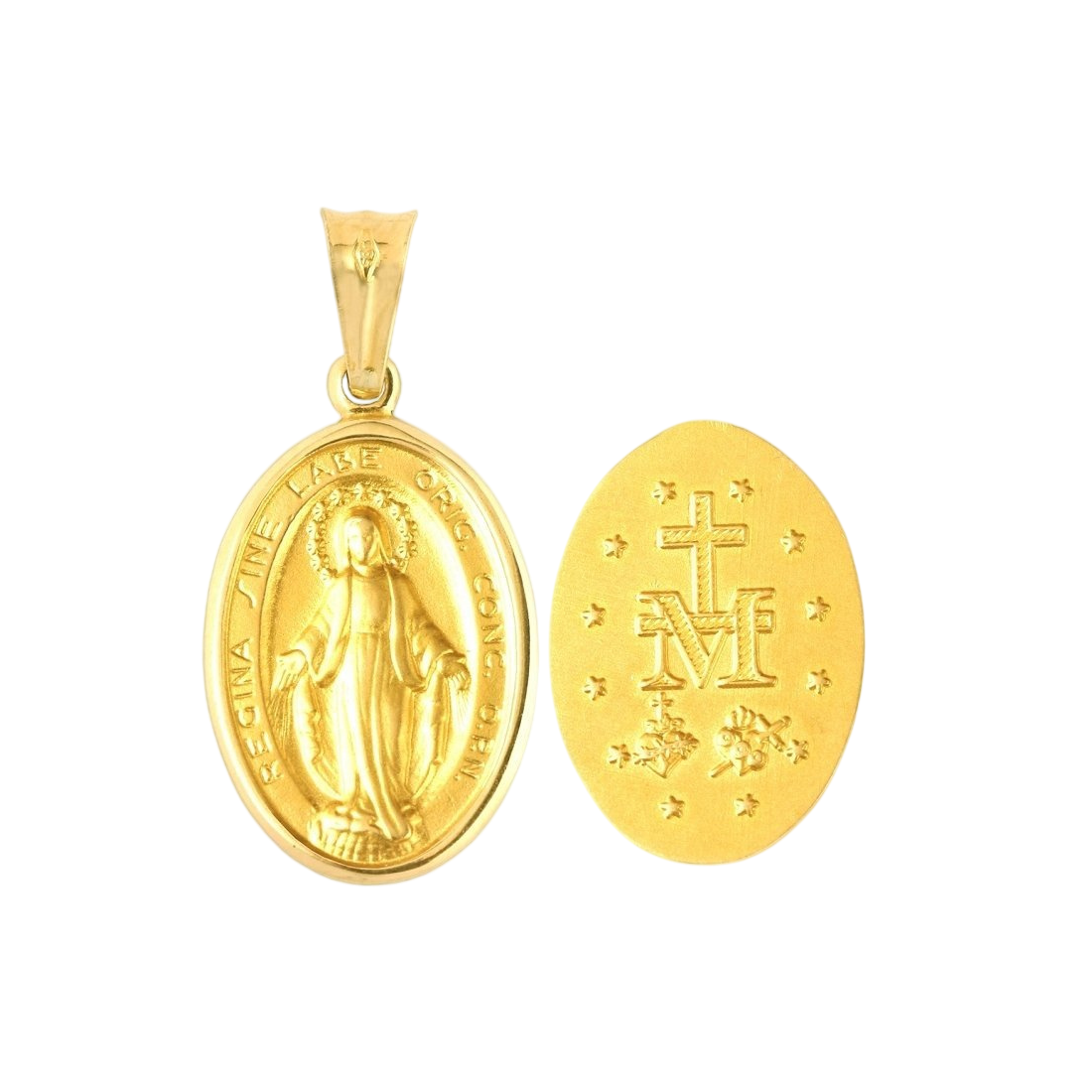 Tradycyjny złoty Cudowny Medalik, dwustronny. Medalik wykonany w całości ze złota o próbie 0,585 / 14 karatów.
