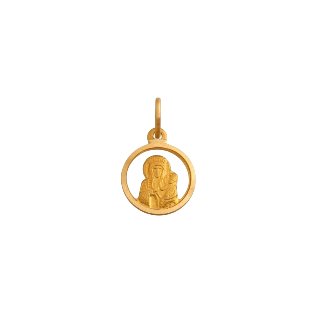 Pełny wdzięku medalik – okrągły, częściowo ażurowy, wykonany w całości ze złota.