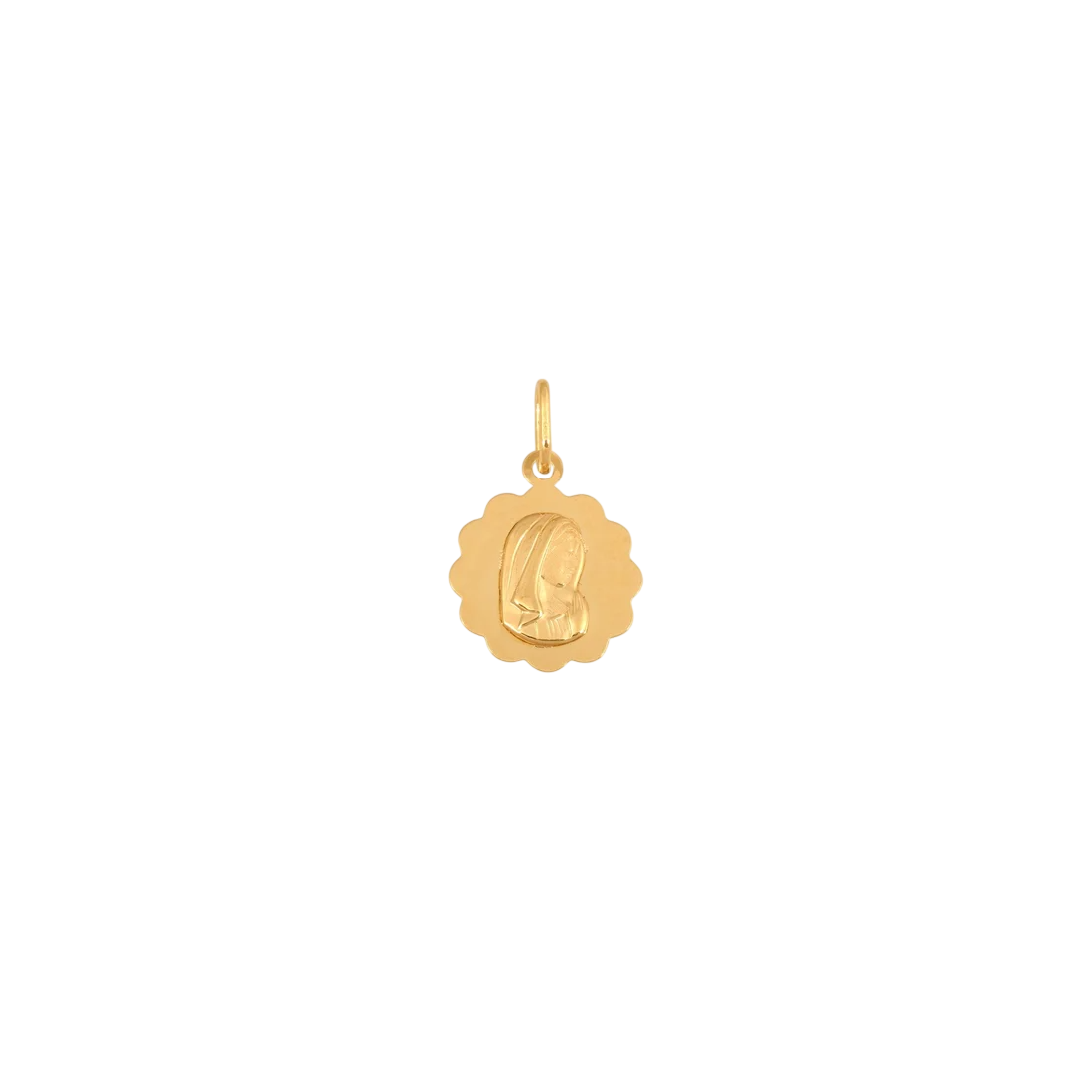 Prześliczny medalik z wizerunkiem Matki Boskiej, wykonany w całości ze złota o próbie 0,585 / 14 karatów.