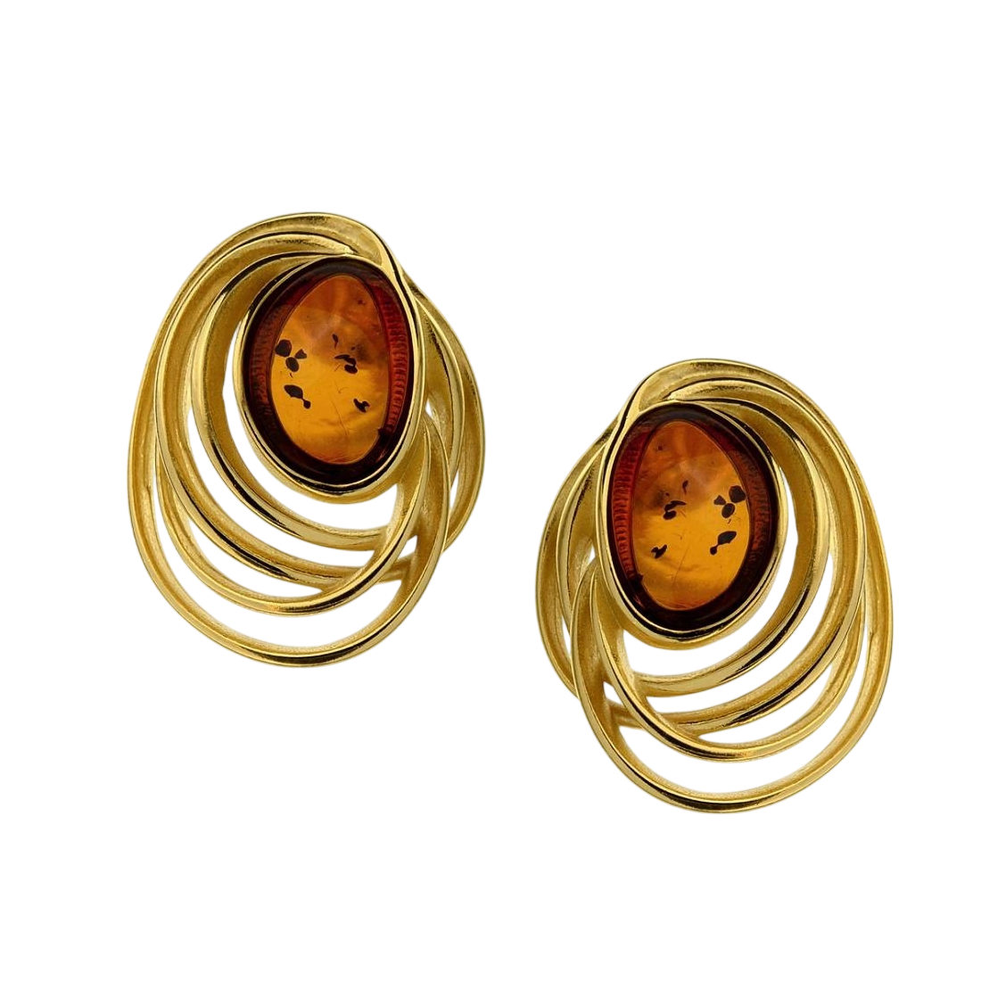 Kolczyki ze sztyftem wykonane w całości z pozłacanego srebra próby 925 z naturalnym certyfikowanym bursztynem bałtyckim w kolorze koniakowym.