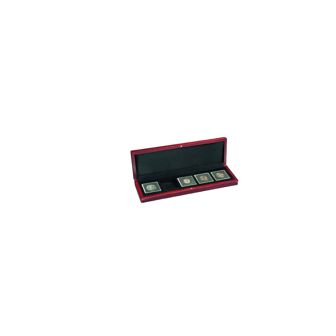 The elegant Volterra Wooden Coin Presentation Case for Five Coin - 24h Shipping! from the renowned manufacturer Leuchtturm is an extremely valuable addition for numismatics enthusiasts, which not only provides excellent protection but also adds sophistication and prestige to its interior. Made from the highest quality wood, these cases not only meet practical requirements but also offer an aesthetic solution for those who value both the safety of their collections and their presentation.