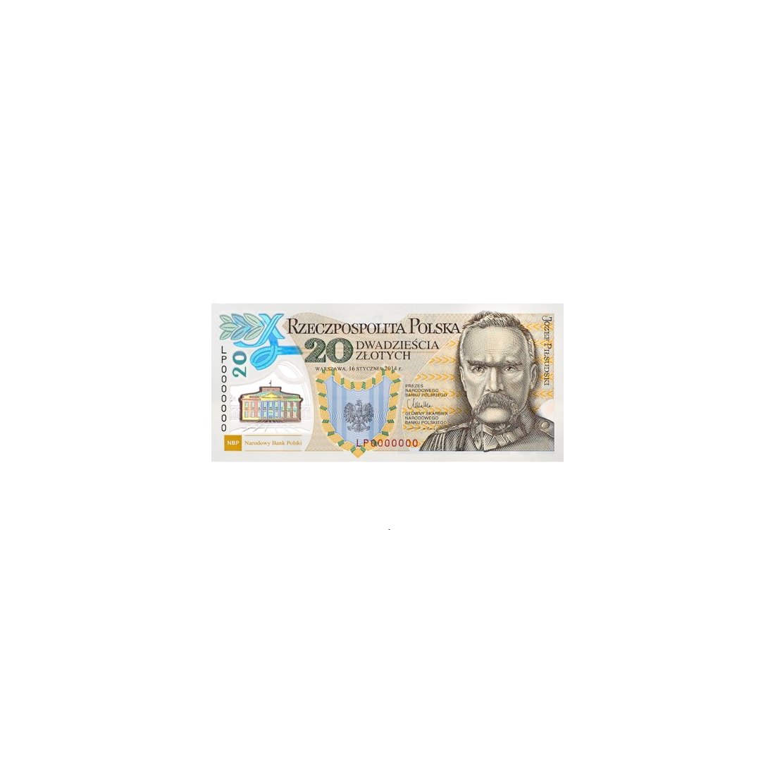 The front side of the banknote features a portrait of Marshal Józef Piłsudski, a central figure in the history of Poland's regaining independence. In the background, there is an image of the Belweder, a residence associated with Piłsudski, which further emphasizes the historical context of the banknote.