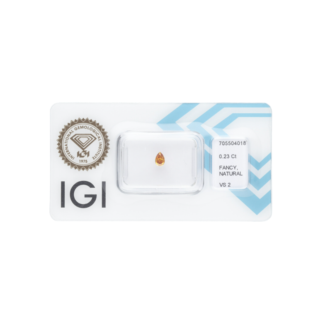 Natural Diamond 0,23 CT / Natural Fancy Intense Yellow Orange / Pear Modified Brilliant / VS2 / G - 24h Shipping!