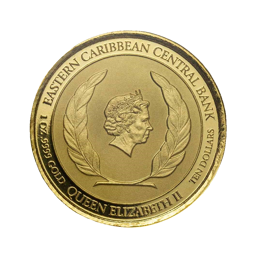 The 2020 Montserrat Oriole is the fifth coin in the EC8 series. This 1 oz gold coin is issued by the island of Montserrat and is one of eight released each year in this historic collection. The series began in 2018. The EC8 (Eastern Caribbean Bank) program consists of four coins minted each year on behalf of each of the following eight Caribbean representatives: Anguilla, Antigua and Barbuda, the Commonwealth of Dominica, Grenada, Montserrat, Saint Kitts and Nevis, Saint Lucia, and Saint Vincent and the Grenadines.