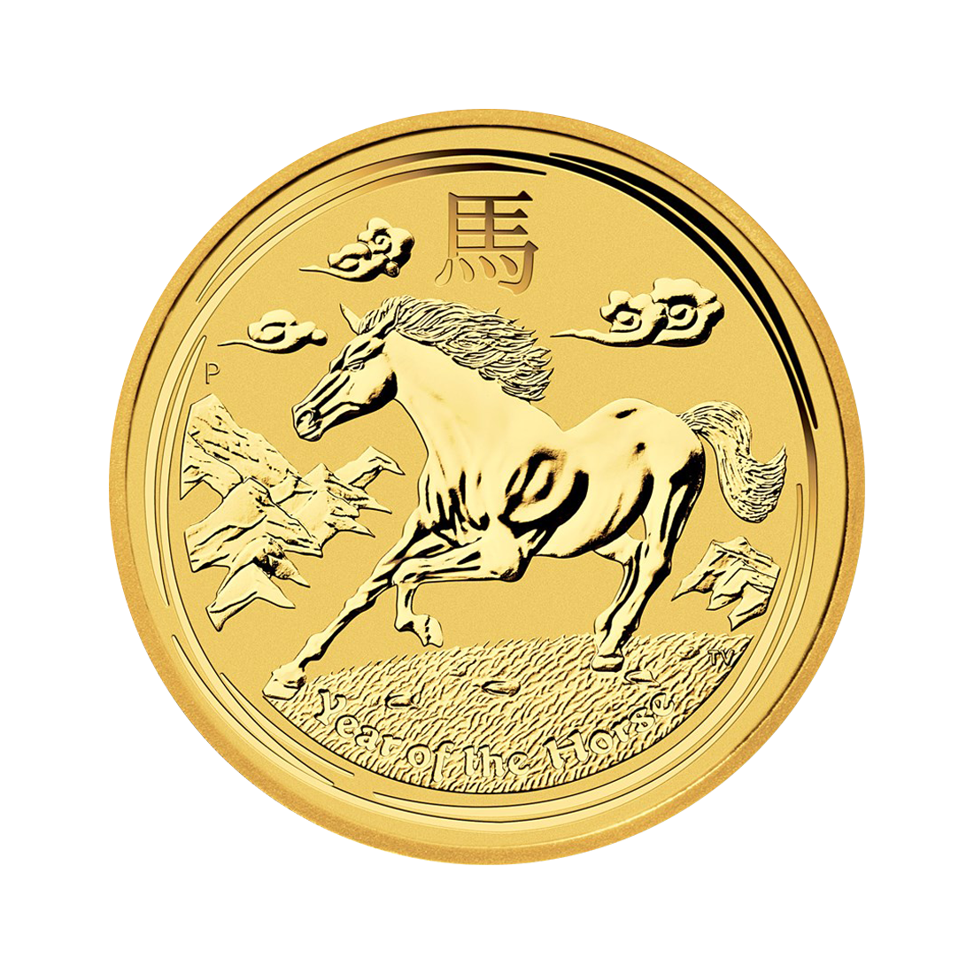 The Lunar Horse bullion coin began to be minted by The Perth Mint in 2013 to celebrate the year 2014, which marked the Year of the Horse. The Lunar Horse coin is attractive to investors and collectors due to its extremely limited supply, variety of denominations, and undeniable beauty. This 1/4 oz gold coin features a purity of 999.9 and presents the horse, one of the 12 animals in the Chinese horoscope.