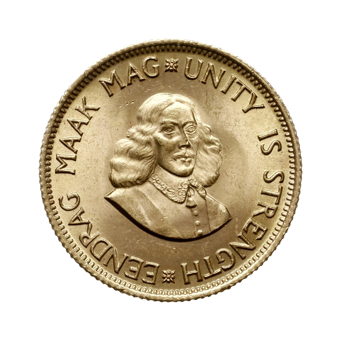 The South African Gold 2 Rand Coin is a true gem in the world of investments. Its obverse features the bust of Jan van Riebeeck, a figure who plays a key role in the history of South Africa. As a Dutch colonial administrator of Cape Town, he is considered one of the main architects of the formation of South Africa. He looked to the future, which is perfectly captured by the motto placed above his bust - "EENDRAG MAAK MAG" (Unity is Strength) in Afrikaans and English. These words not only form the foundation of the nation's unity but also guide investors' attention towards the stability and developmental potential of this region.