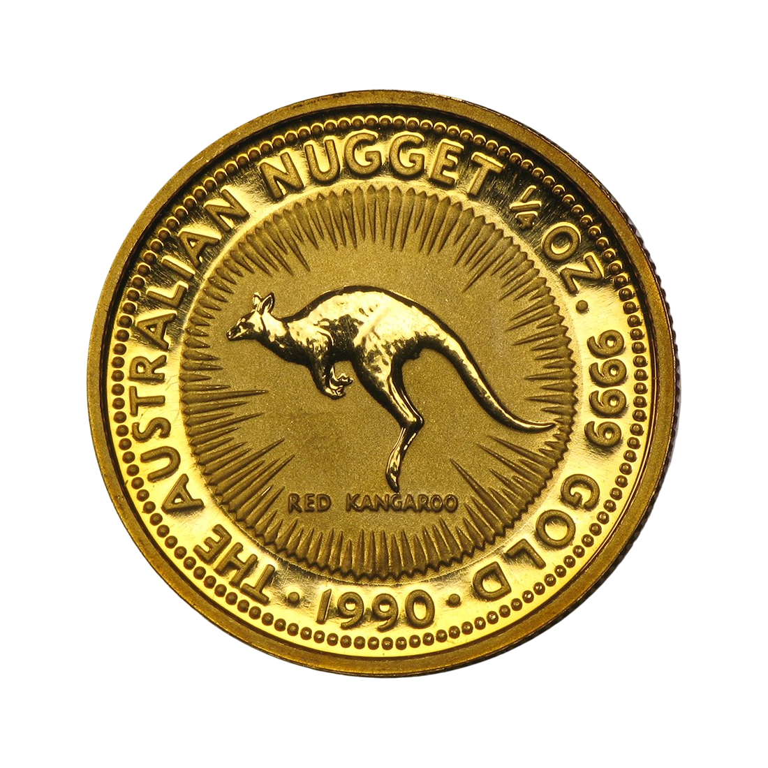 Gold has been considered a safe haven for capital for centuries, especially in times of market uncertainty. Investing in physical gold, such as the 2024 1/4 oz Australian Gold Kangaroo Nugget Bullion Coin - Shipping 24!, allows you to protect savings from inflation and financial market fluctuations. Due to its small size, the 1/4 oz coin is easy to store and transport, making it an ideal choice for those who want to invest in gold in more affordable amounts while enjoying the full benefits of owning the precious metal.
