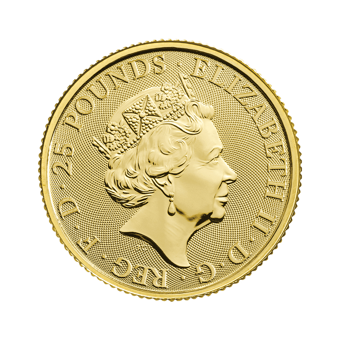 An exceptional collector's and investment piece, struck from 1/4 ounce of pure gold. Issued in 2019 by the renowned British mint The Royal Mint, it is part of the prestigious series inspired by the heraldic symbols accompanying the coronation of Queen Elizabeth II. The Falcon draws on the rich tradition of English heraldry and refers to the Plantagenet dynasty, one of the most powerful royal families in English history. The coin combines historical, artistic, and bullion value, making it an attractive choice for both collectors and investors. Issued in limited editions, it enjoys significant interest in the numismatic market, and its authenticity and quality of craftsmanship are confirmed by the highest standards of the British Royal Mint.