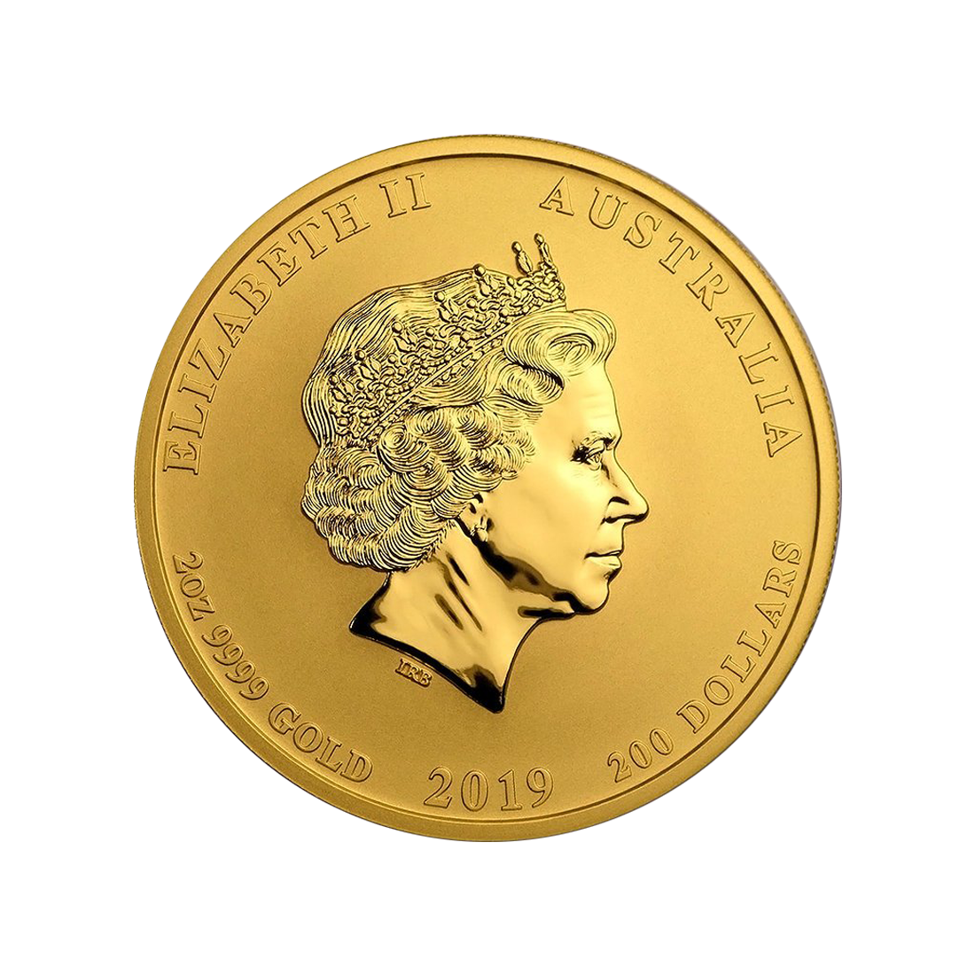The 2 oz Australian Lunar Year of the Pig 2019 Gold Coin is an exceptional gold coin that enjoys immense popularity among collectors and investors worldwide. It is one of the coins from the Lunar II series, issued by the renowned Perth Mint. This coin is a tribute to the twelfth and final animal in the Chinese horoscope - the Pig. People born under this sign are characterized by noble traits such as sincerity, honesty, and loyalty. They are also known for their stoic nature, which allows them to remain calm even in the most challenging situations. Some of the most famous figures born under the sign of the Pig include Elvis Presley (1935), David Bowie (1947), Alfred Hitchcock (1899), and Humphrey Bogart (1899).