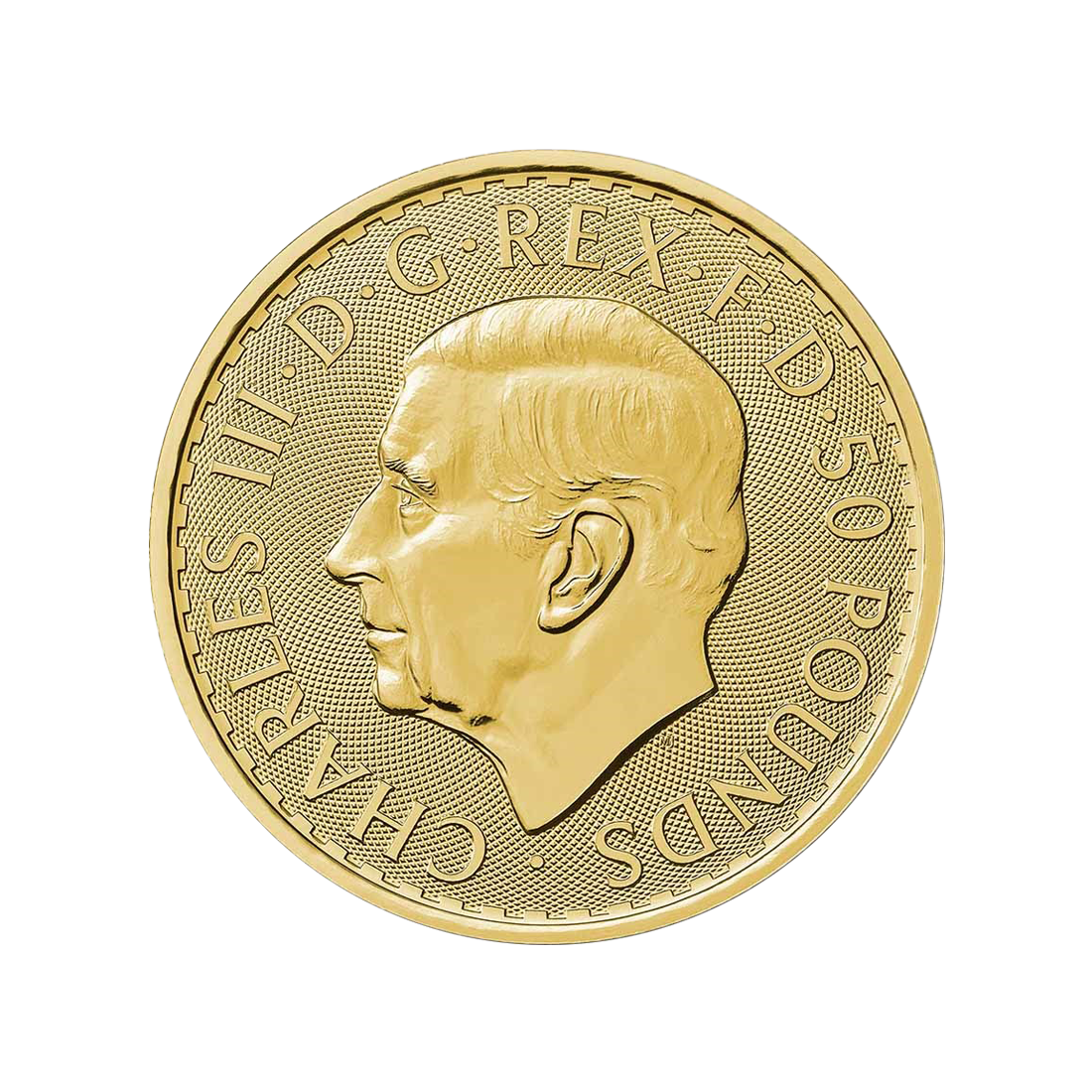 The reverse of the coin features the figure of Britannia, whose pose changes depending on the year of minting. The edge includes the coin's name, year of issue, and metal content.