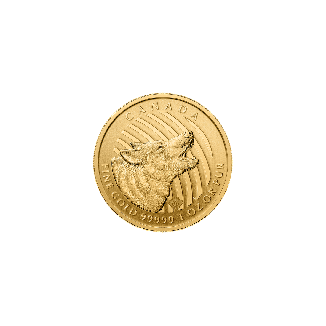 The "Howling Wolf" gold coin is a unique investment proposition for those seeking security, prestige, and the highest quality. It is the first edition of the renowned "Call of the Wild" series, issued in 2014 by the Royal Canadian Mint. The coin is struck from one ounce of gold with an unprecedented purity of 9999, making it one of the purest investment coins in the world.