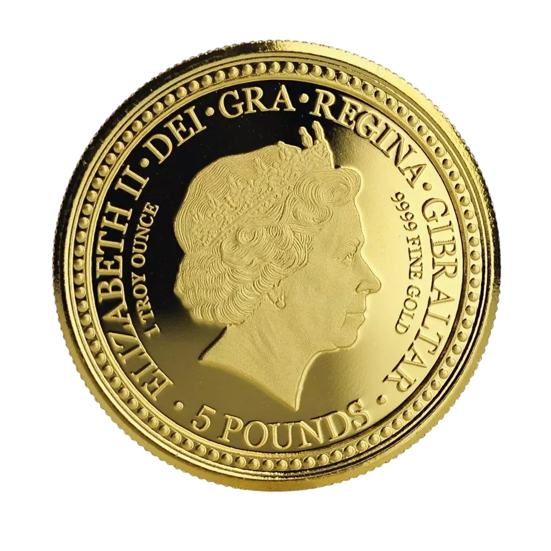 The 2018 "Royal Arms of England" coin is a unique combination of England's rich history with the highest minting quality. Minted by Scottsdale Mint on behalf of Gibraltar, it is the first issue in a series inspired by the royal coat of arms of England, introduced by King Richard the Lionheart. The reverse of the coin features a shield with three lions passant guardant, symbolizing the power and heritage of the Plantagenet dynasty.