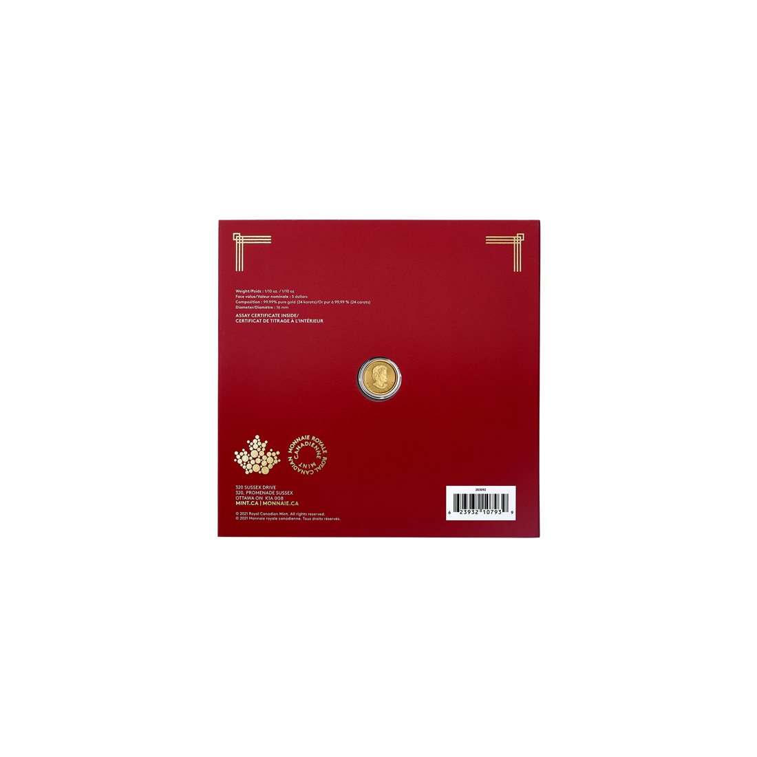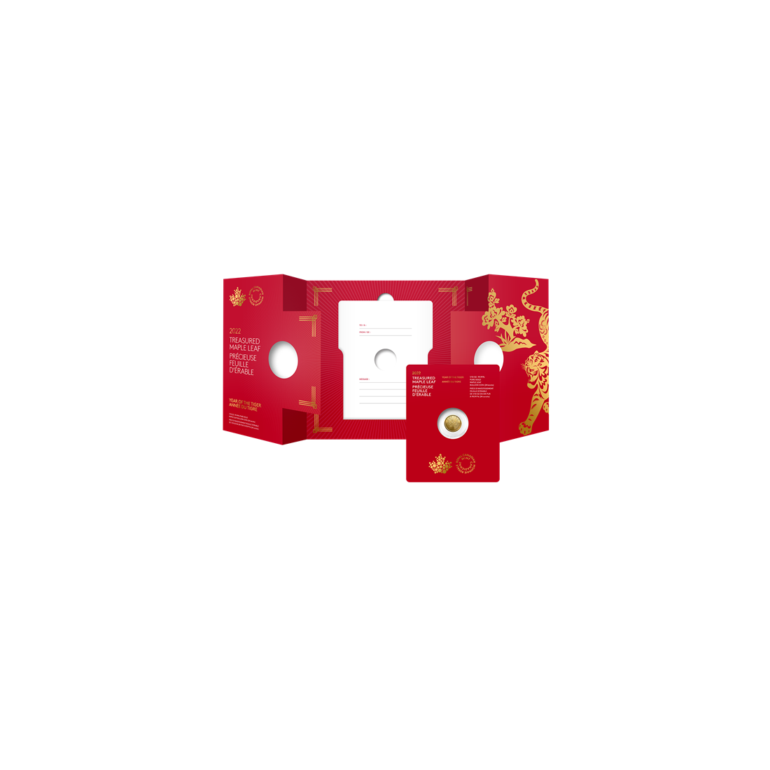 Appearance of the Treasured Gold Maple Leaf Coin: Year of the Tiger 2022 1/10th oz