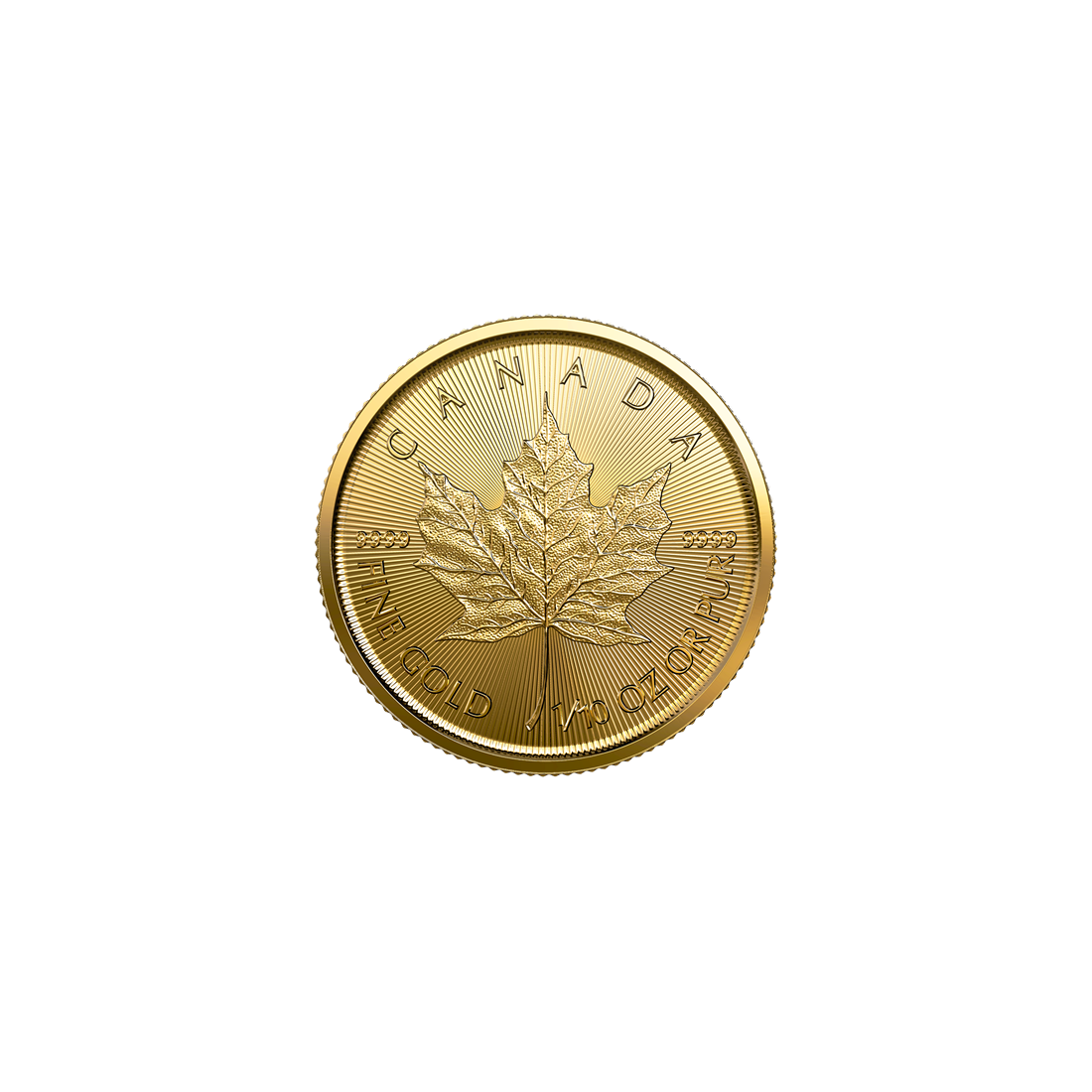 The reverse of the coin features the symbol of Canada – the maple leaf, along with the name of the issuing country and information about the weight and gold purity. The obverse of the coin depicts the image of Queen Elizabeth II. Around her, you will find the denomination, the date of issue, and the name of the monarch.