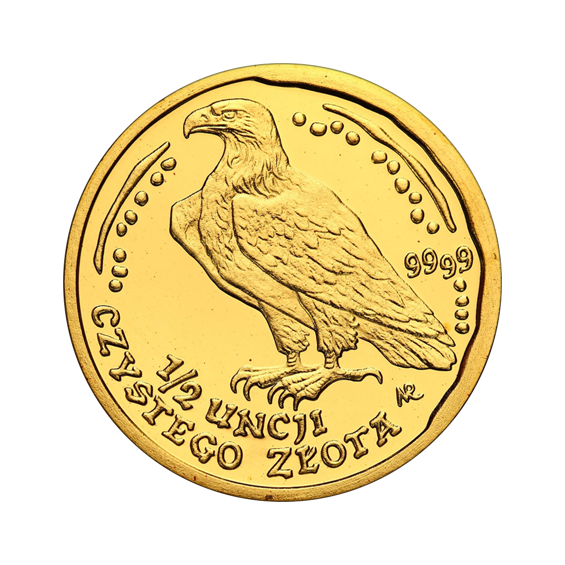 1/2 oz White-tailed Eagle Gold Coin is an exceptional work of craftsmanship minted especially at the request of the National Bank of Poland, inaugurating its issuance in 1995. The White-tailed Eagle, adorning this 1/2 oz gold coin, stands out as the first and only Polish investment coin, giving this product a unique character in the market.