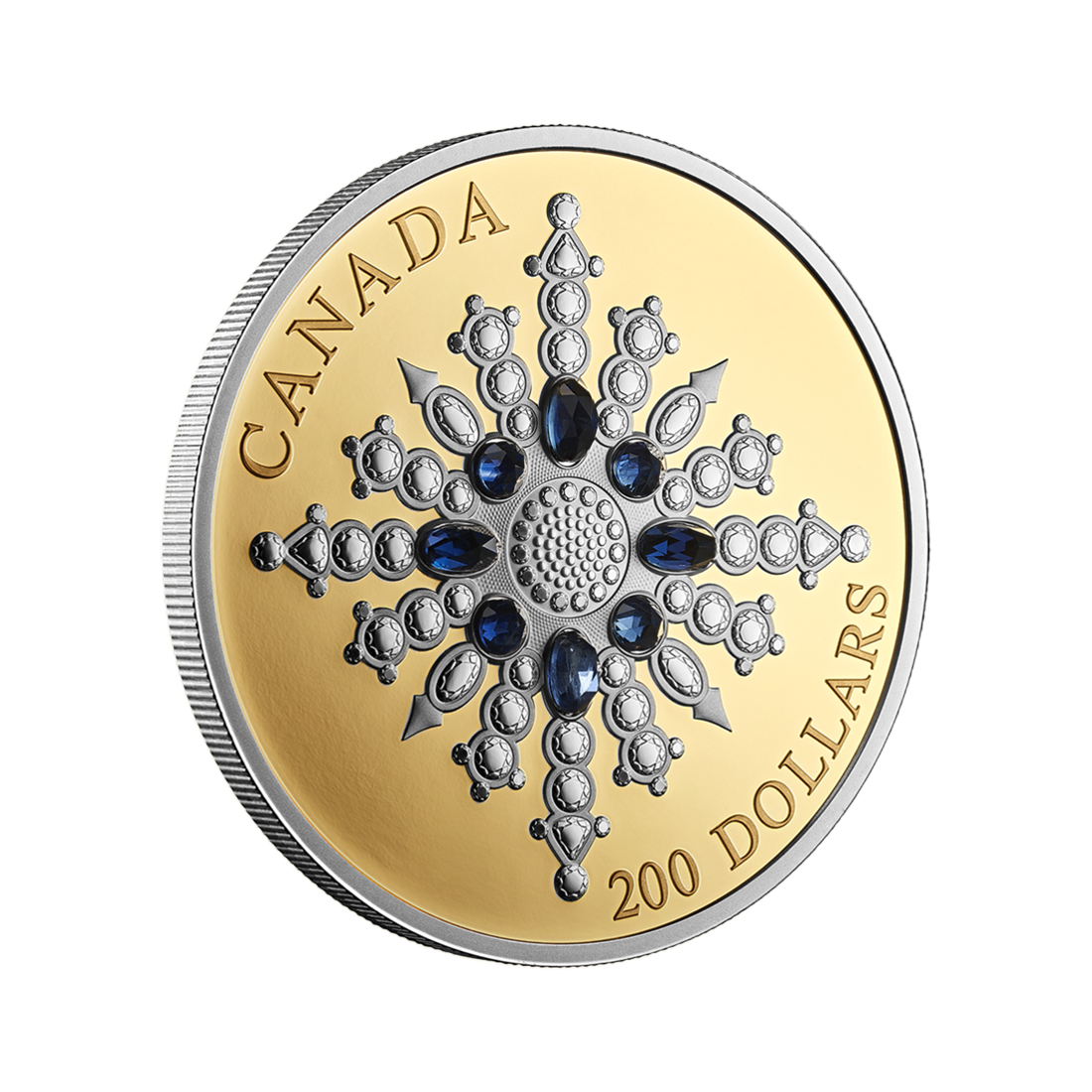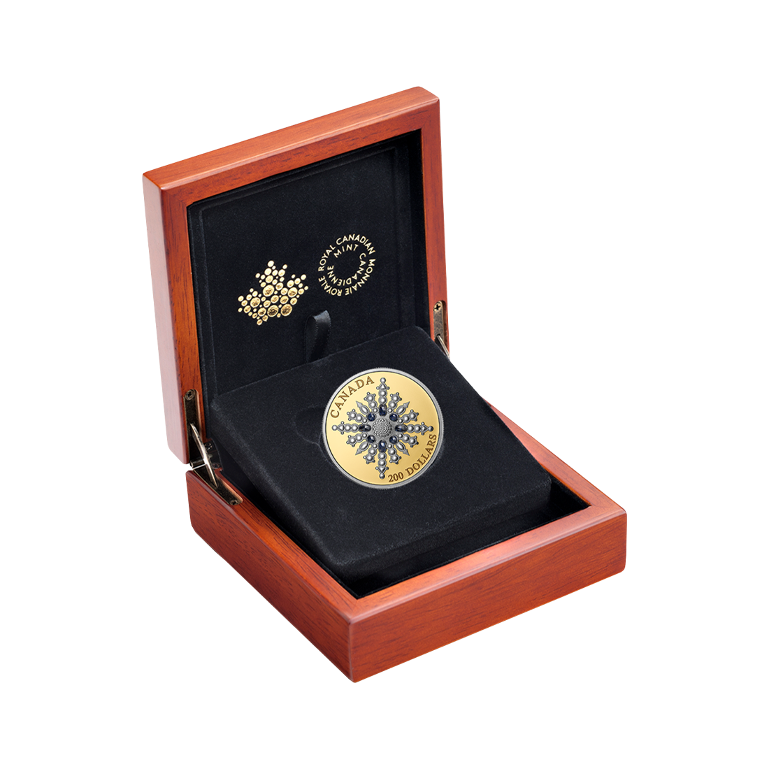 A $200 denomination coin made of pure gold, created in the likeness of the brooch presented to Queen Elizabeth II by the people of Canada in 2017. This commemorated her 65-year reign and the 150th anniversary of Canadian confederation. Canada recognizes the British monarch as its own head of state.