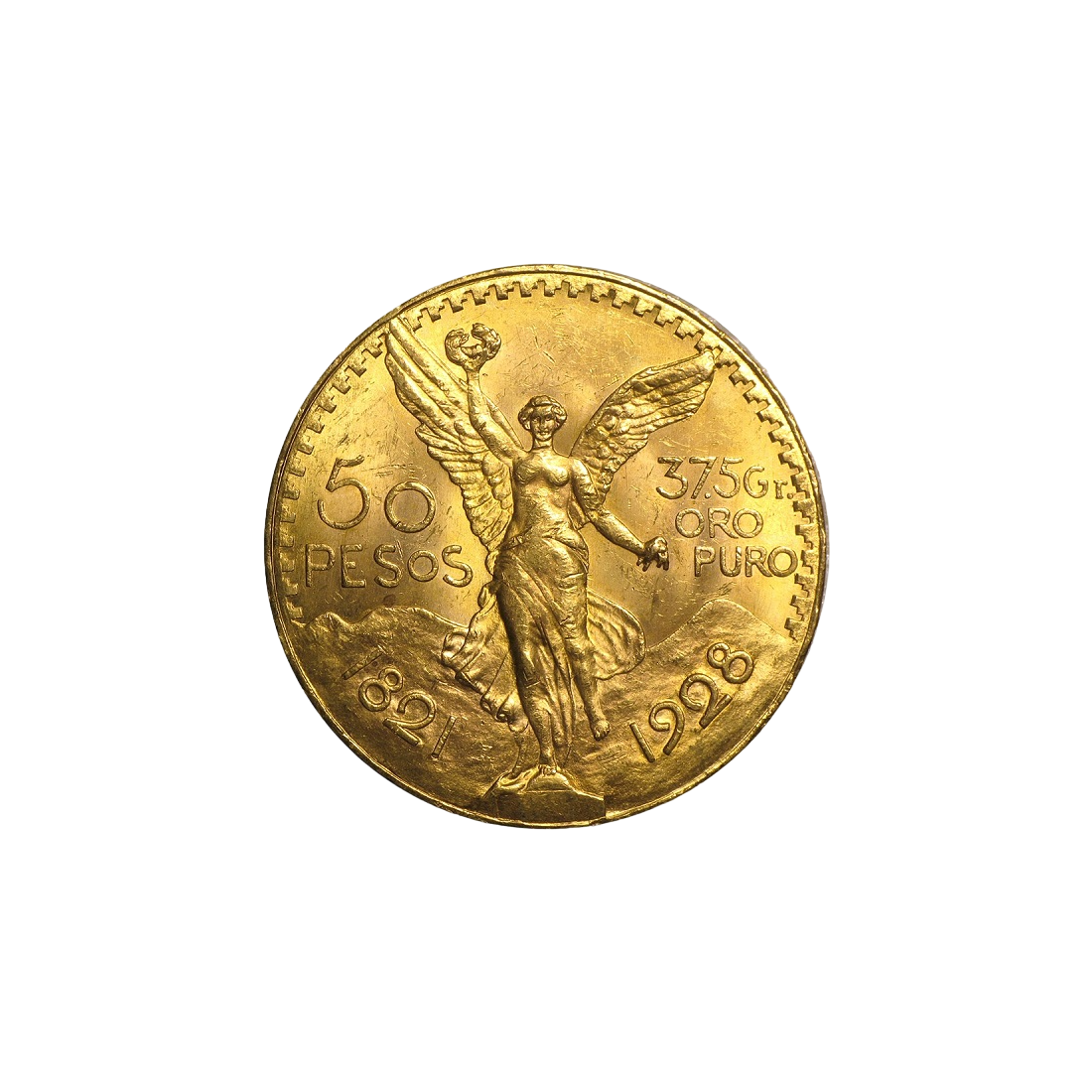 The Mexico Gold 50 Pesos - 24h Shipping! coin is also known as the Centenario coin. It is made of 900 fine gold and weighs 41.66 grams. The gold coin is not only a great way to invest capital but also an enchanting design that tells the story of the heroic struggle for Mexico's independence.