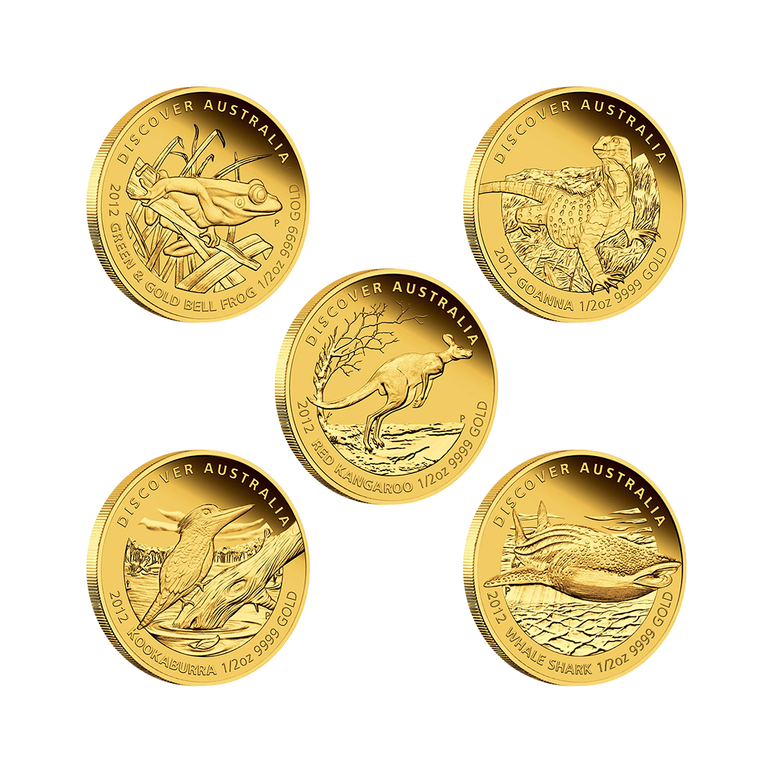 Description of the 2012 5-Coin 1/2 oz Gold Discover Australia Proof Set - 24h Shipping!