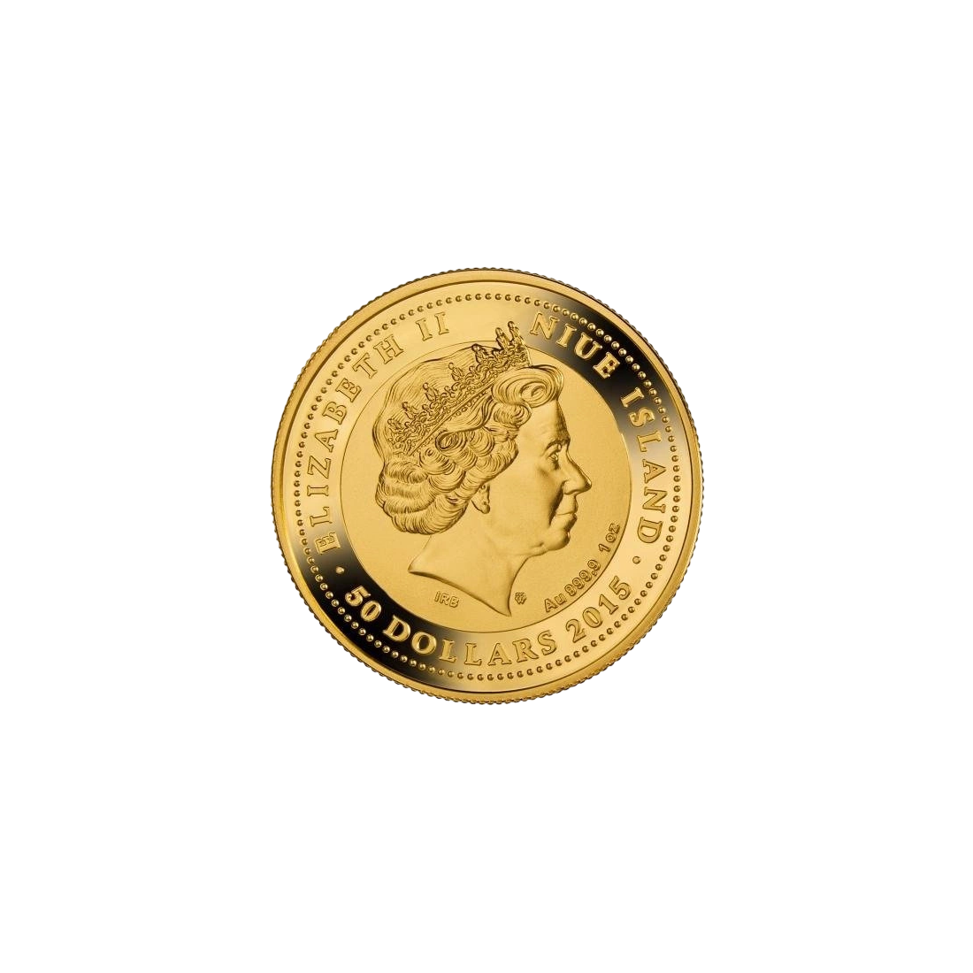 The obverse features the image of Queen Elizabeth II, next to her the symbol of the Polish Mint M/W and the metal fineness. Along the rim are the inscriptions: "ELIZABETH II", "NIUE ISLAND" indicating the issuer, as well as the denomination and year of issue.