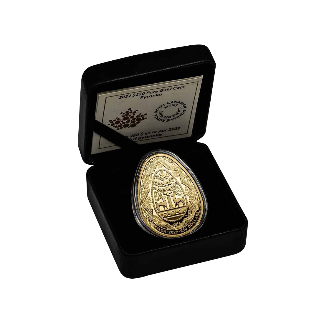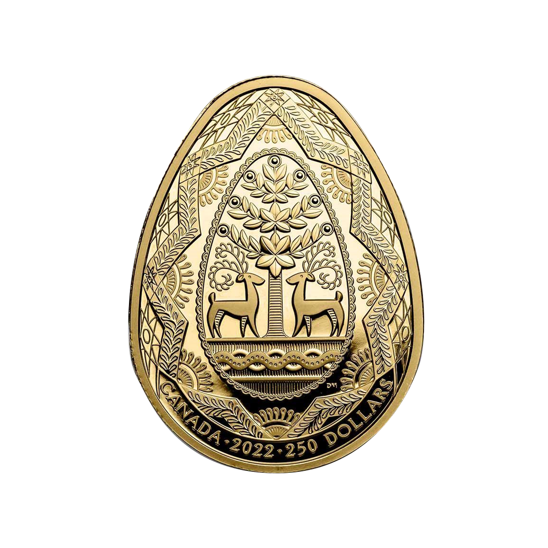 2022 $250 Pysanka - Pure Gold Coin - 24h Shipping! A 2-ounce gold coin minted in 2022 by the Royal Canadian Mint, referencing the Ukrainian tradition of decorating pysanky.
