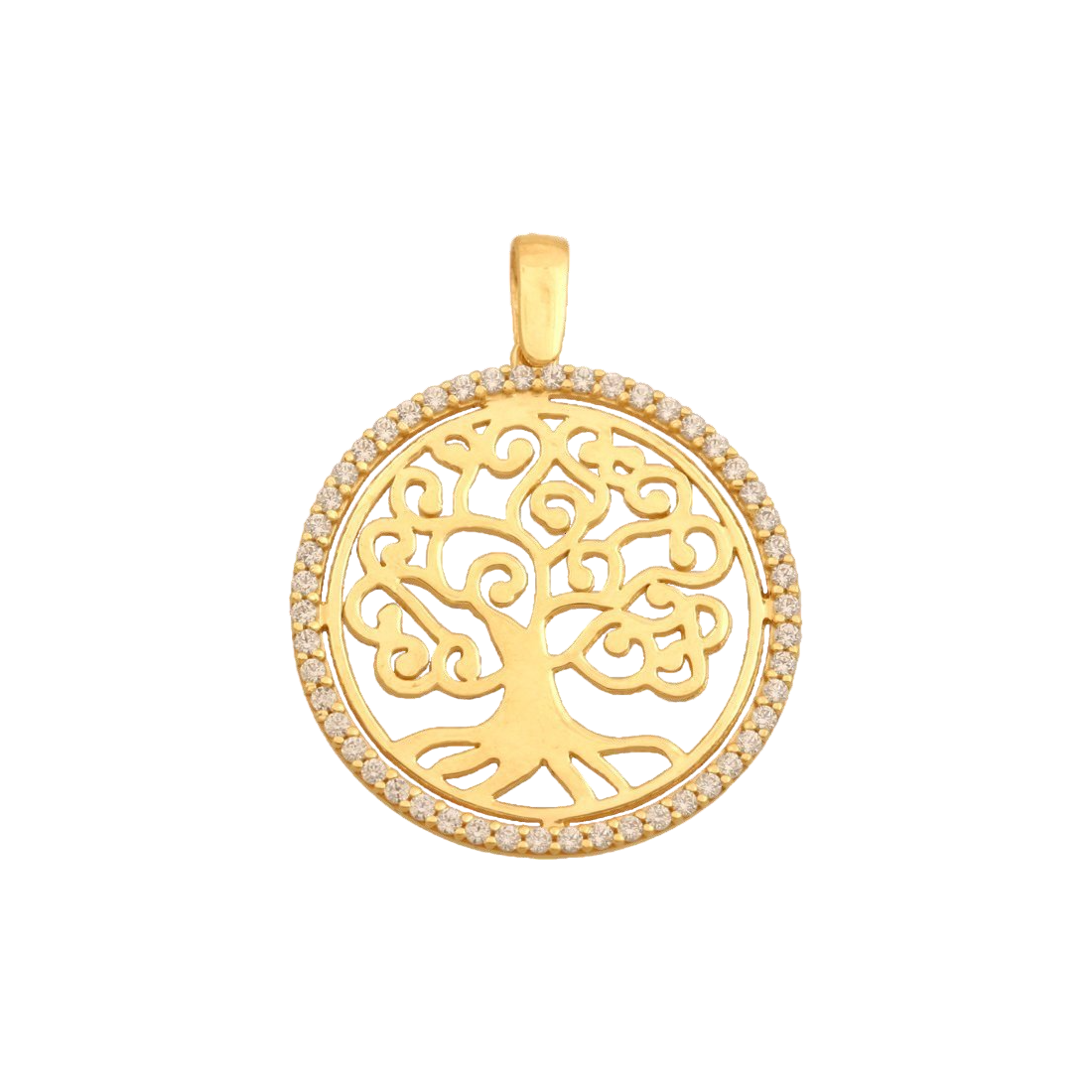 Gold Tree of Life Pendant with Cubic Zirconia - 24h Shipping! made entirely of gold with a fineness of 0.585 / 14 karats with white cubic zirconia.