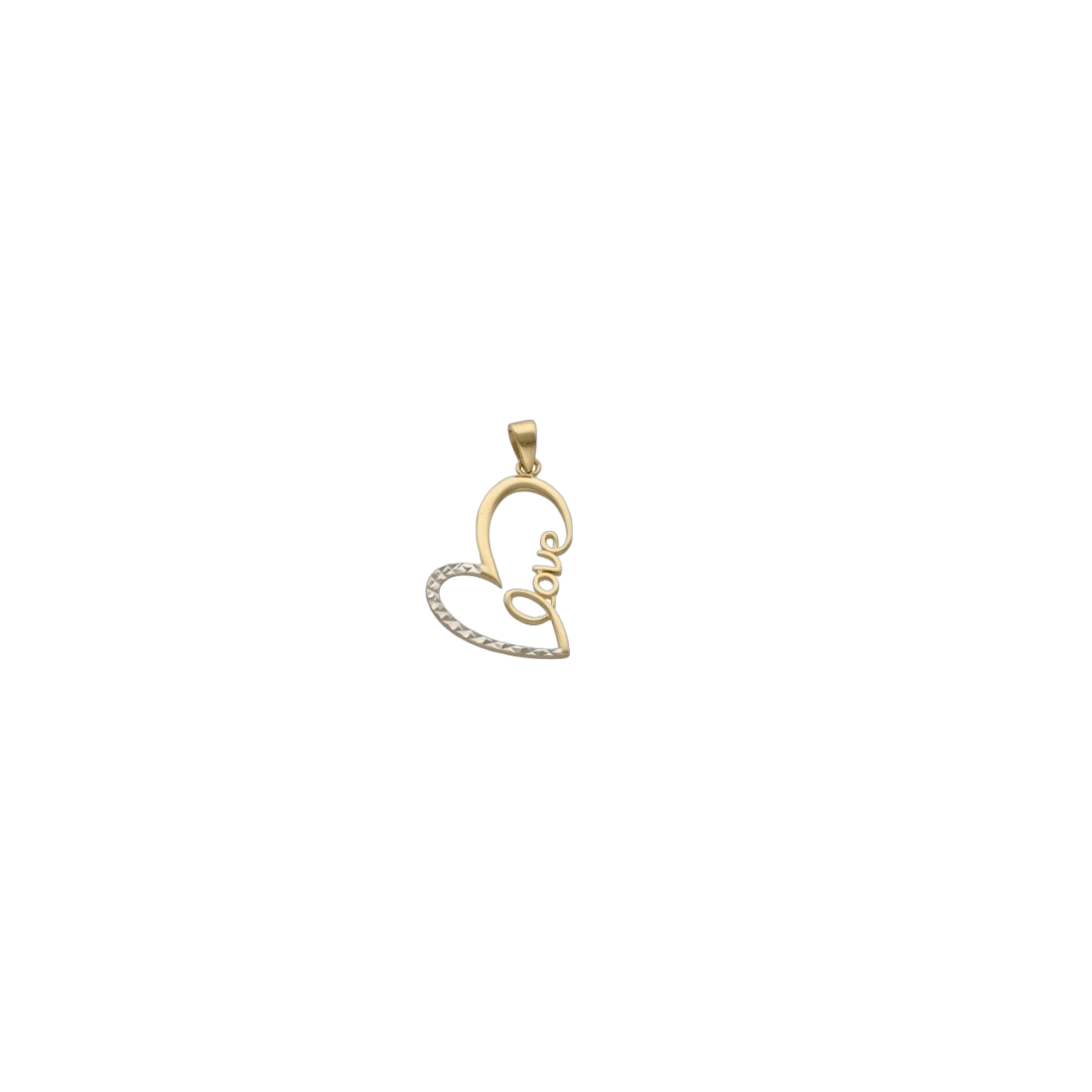 Magical pendant with the word love woven into a heart, made entirely of yellow and white gold 585/14K.
