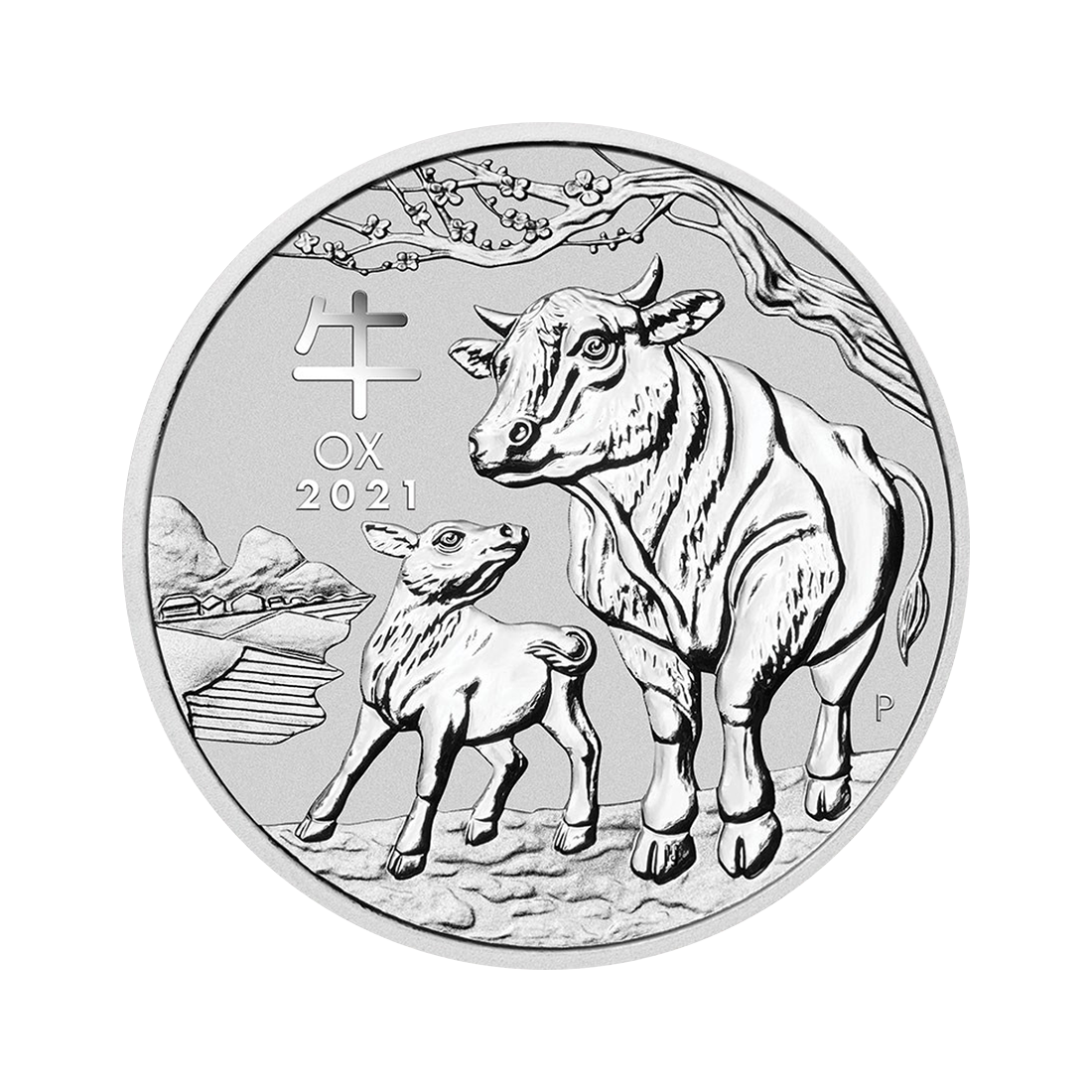 The Australian Lunar Series III collection, produced by the Perth Mint, continues the rich tradition of minting spectacular bullion coins featuring animal motifs from the Chinese lunar calendar. The reverse design changes annually, reflecting the Chinese lunar calendar, and 2021 was the Year of the Ox. People born under the sign of the Ox, in the years 2021, 2009, 1997, 1985, 1973, and further in the 12-year cycle, are described as kind, intelligent, honest, and trustworthy. They are appreciated for their strong work ethic, logical thinking, and calm demeanor. They are often considered great leaders.
