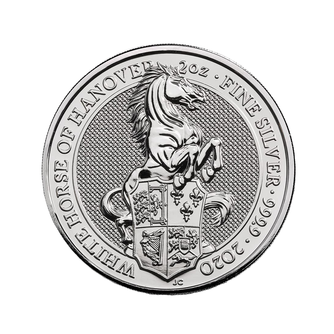 The 2020 2oz White Horse of Hanover Silver Coin Queen's Beasts - 24h Shipping! is already the ninth in the Queen's Beasts series. The coin is produced by the British mint, The Royal Mint. The White Horse is 2 ounces of silver in its purest form (999 fineness).
