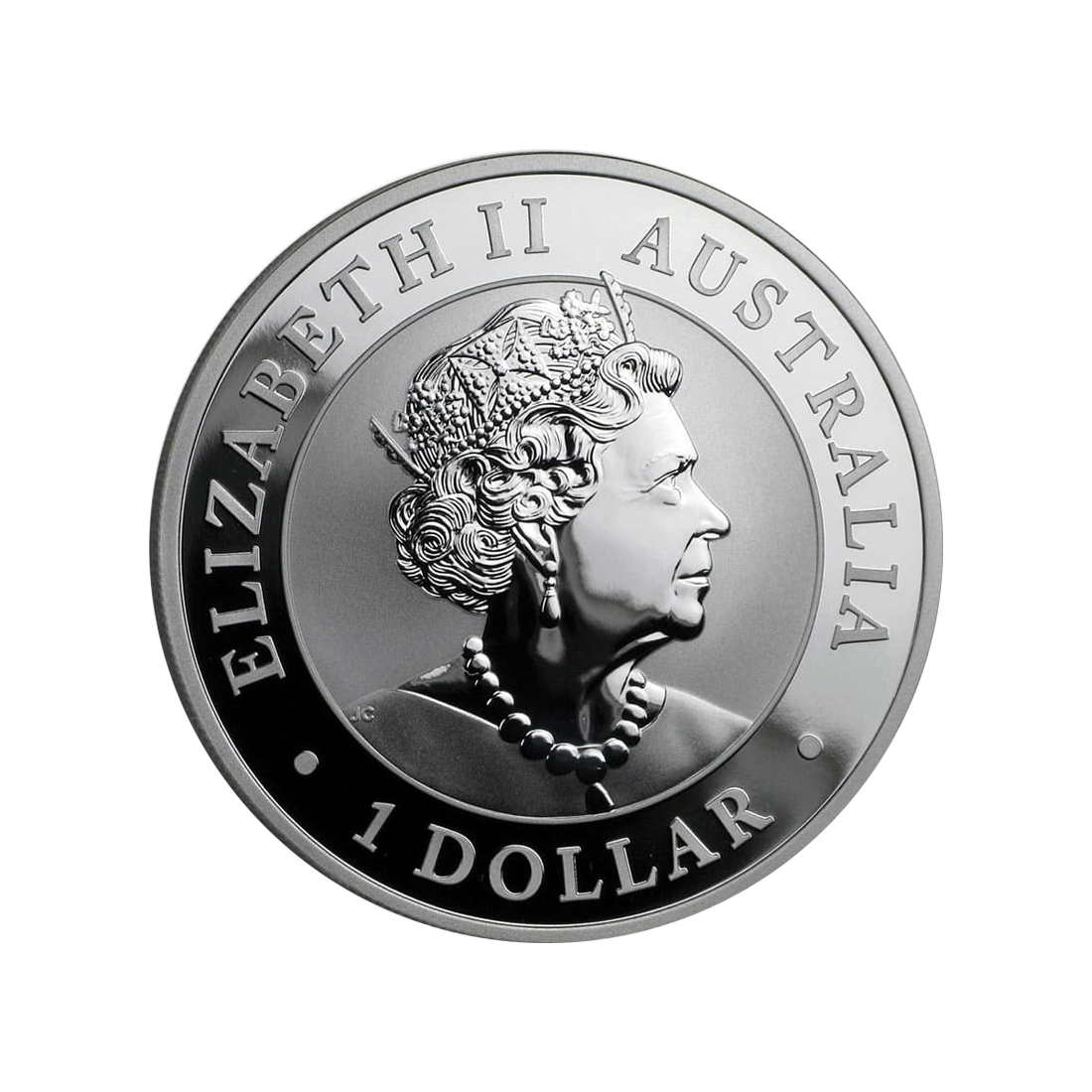 The reverse of the silver coin features two emu individuals. It also indicates the year of minting, as well as the weight and fineness of the metal.