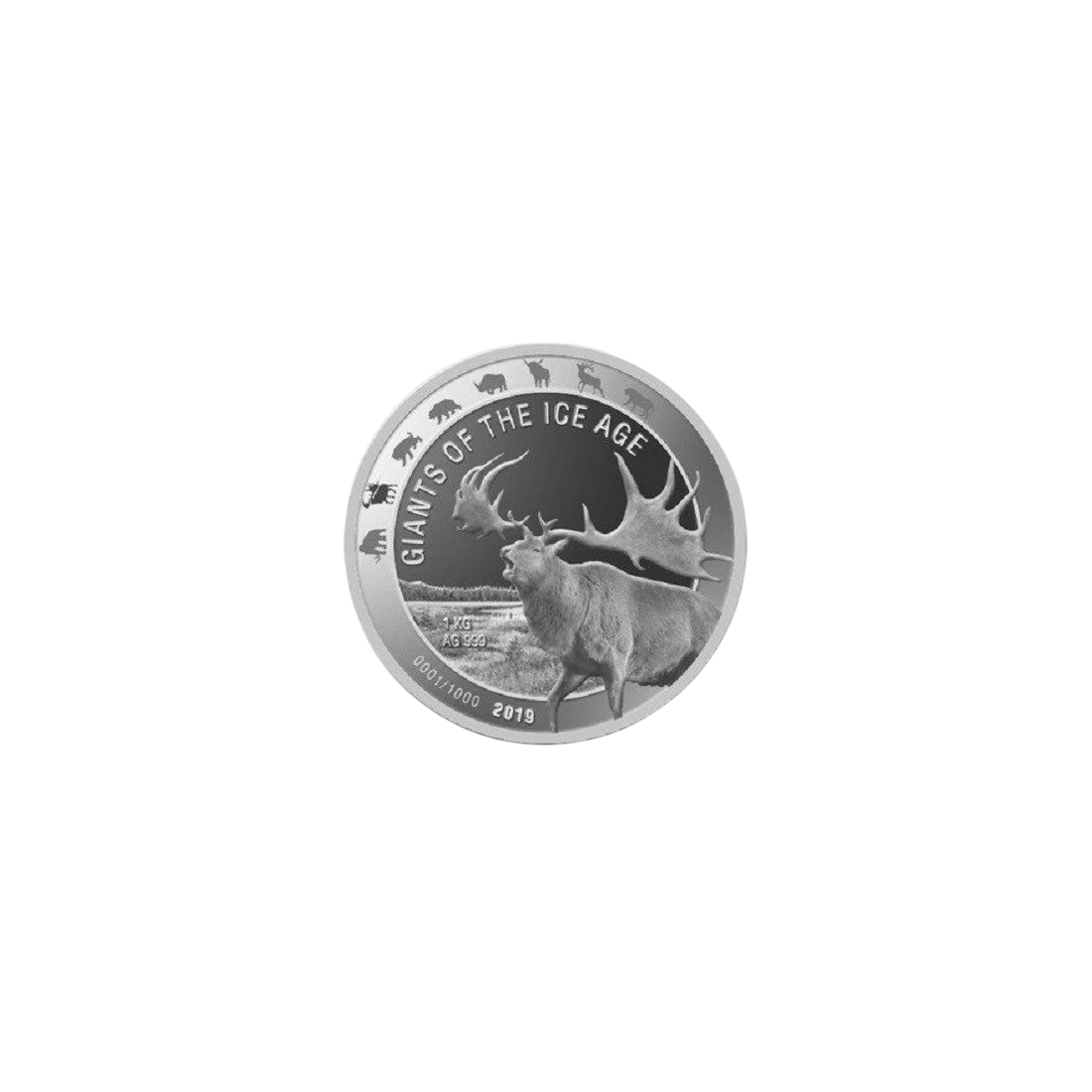 2019 Ice Age Giants – Giant Deer 1 kg Silver Coin - Shipping 24h! Silver coin from the series "The Giants of Ice Age" from 2019, weighing 1 kilogram.