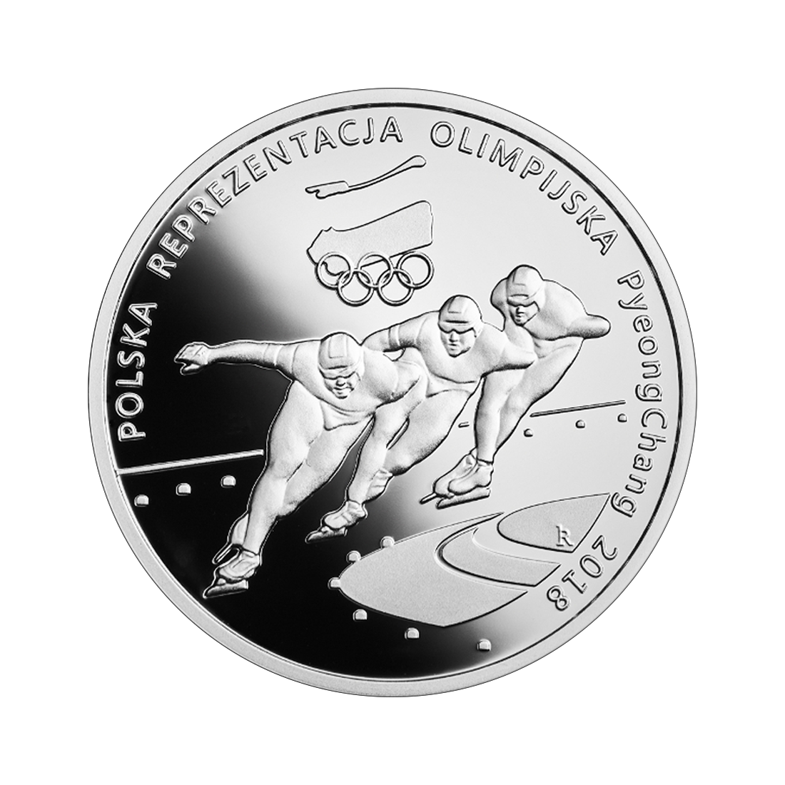 The reverse features the PKOl logo, the words “Polish Olympic Team PyeongChang 2018” and a stylized image of a speed skating team.