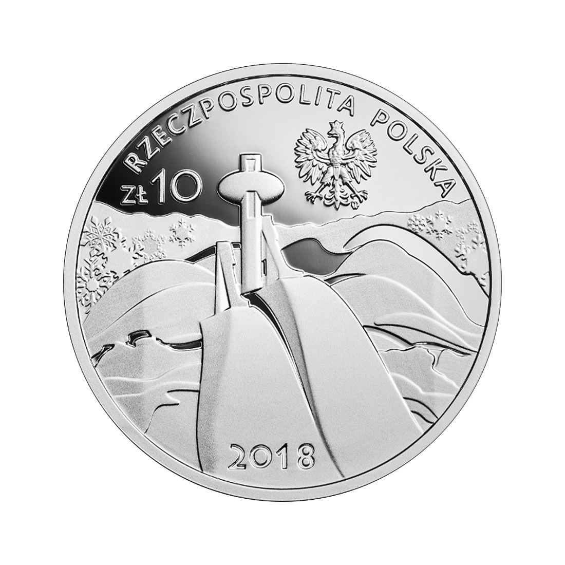 The obverse presents the national emblem, the inscription “Rzeczpospolita Polska”, the Olympic ski jumps in PyeongChang, as well as the coin's denomination.