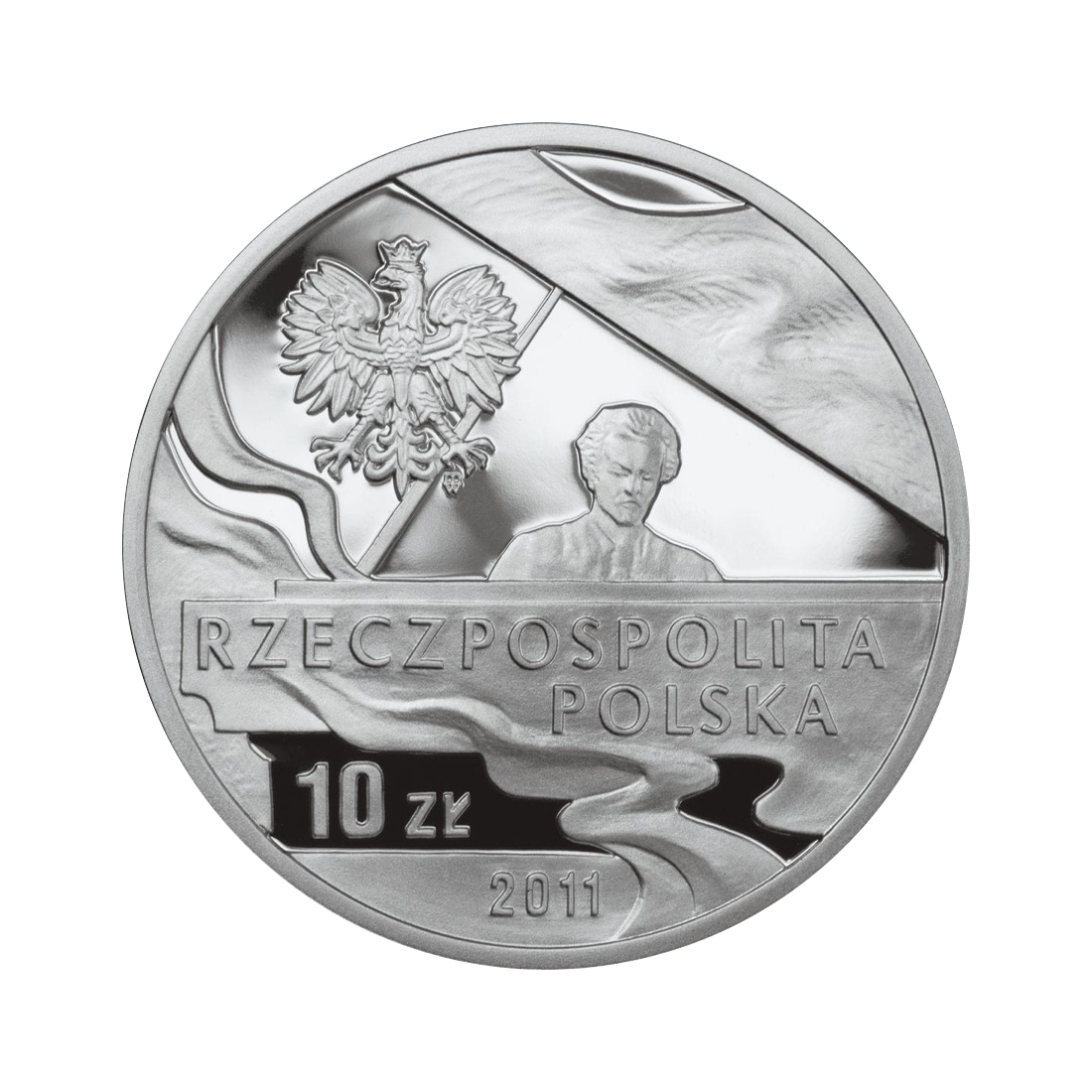 On the reverse of the silver coin, there is a stylized depiction of the bust of Ignacy Jan Paderewski. On the right side, an image of an eagle is placed, referencing the coat of arms of the Republic of Poland introduced in 1919. At the top of the coin, in a semicircular form, is the inscription: IGNACY JAN PADEREWSKI. At the bottom, on the left side, against the background of the bust of Ignacy Jan Paderewski, there is another semicircular inscription: 1860-1941. On the obverse of the coin, there is a stylized image of Ignacy Jan Paderewski playing the piano. Below the image is the inscription: RZECZPOSPOLITA POLSKA, and at the very bottom, the year of issue is placed: 2011. Above, on the left side of the coin, is the inscription: 10 zł. One can also see the image of an eagle, which is the emblem of the Republic of Poland.