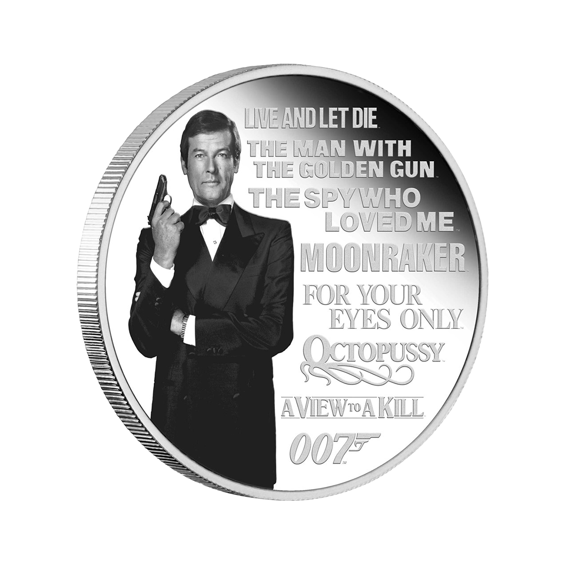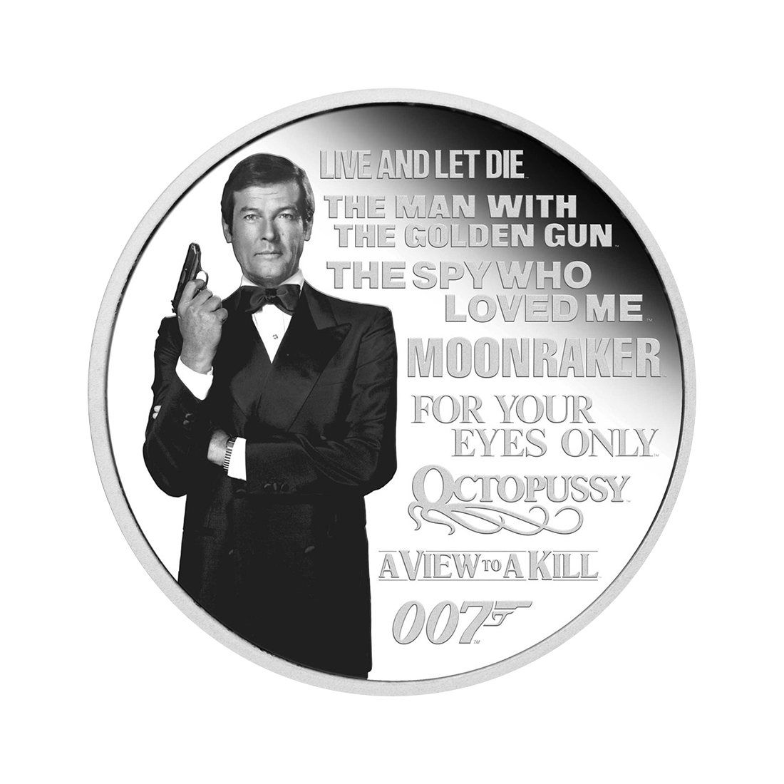 Appearance of the 1 oz Proof Colorized James Bond Legacy Roger Moore Silver Coin - 24h Shipping!