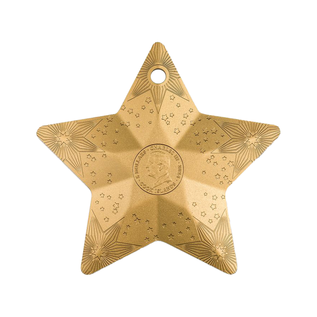 Starry Sky is a celebration of the universe's mysteries, captured in precious metals and crystals. The three-dimensional star-shaped coin features stunning gilded and crystal embellishments, which, combined with a silk finish, reflect the beauty of a starry night. The obverse of the coin depicts a portrait of King Charles III, while the reverse presents a star pattern with intricate details and an 8-pointed star in the center. With the ability to hang the coin as an ornament, it combines modern craftsmanship with the centuries-old tradition of holiday decorations, rooted in 16th-century Germany.