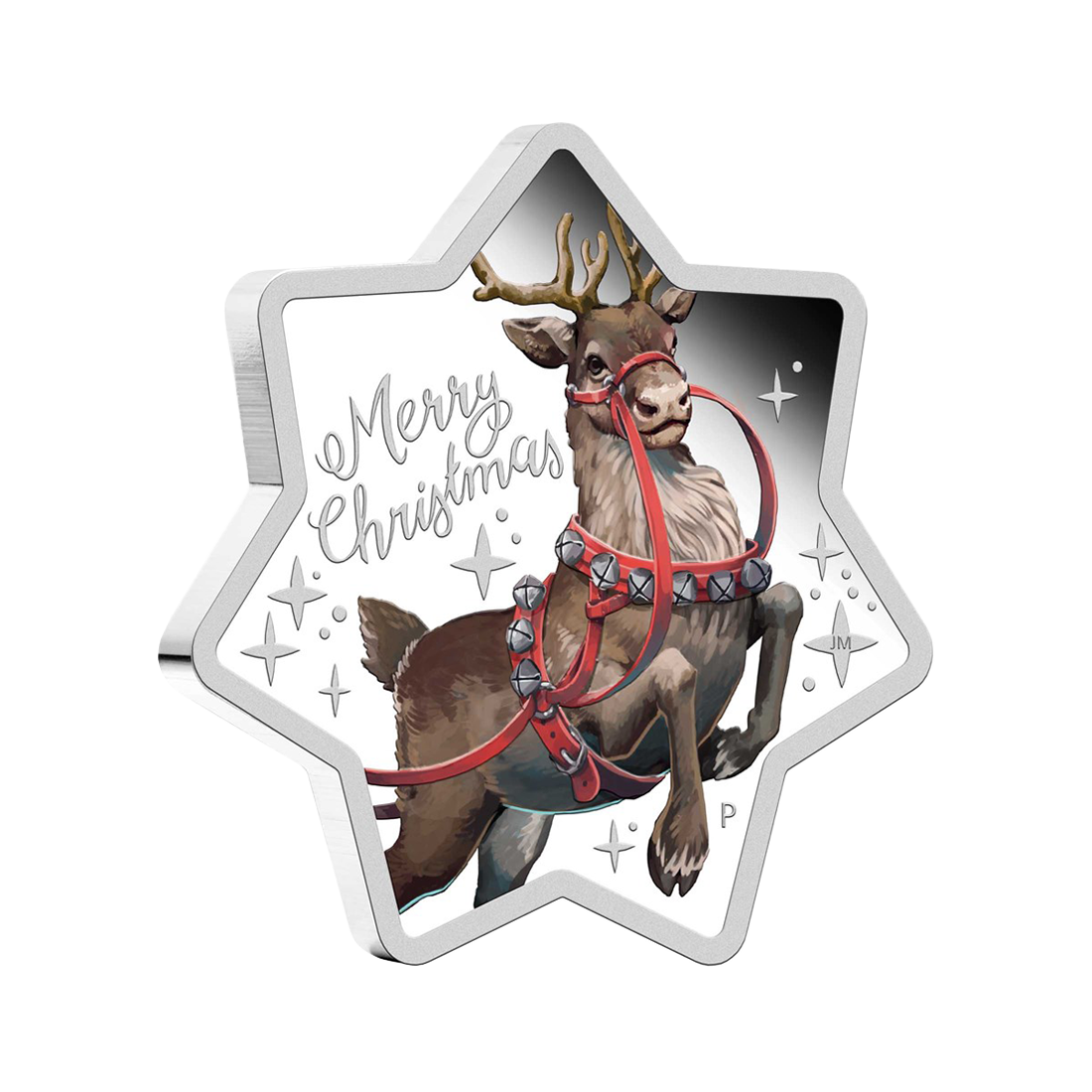 2019 1 oz Proof Australian Silver Christmas Reindeer Coin (Star-Shaped) - 24h Shipping!