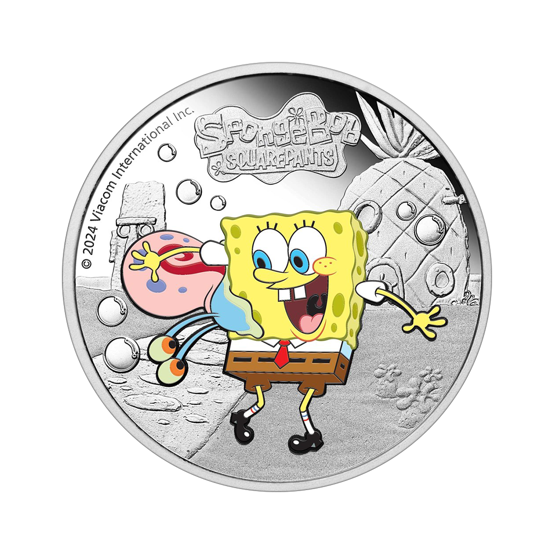 Appearance of the 1 oz Silver SpongeBob SquarePants & Gary Coin