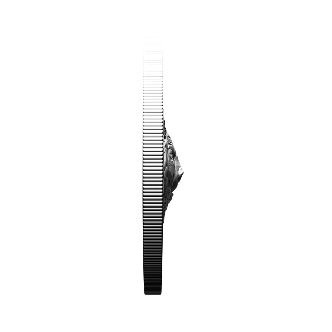 The design impresses with its unique style, referencing heraldic art and Canadian nature. The reverse features a stylized image of a bear's head. It is characterized by extraordinary detail and three-dimensionality, achieved through Extraordinarily High Relief (EHR) technology. The deep relief makes the bear appear to emerge from the coin, giving it an almost sculptural character. The bear's face exudes strength and majesty, while sharp edges add a modern, futuristic look.
