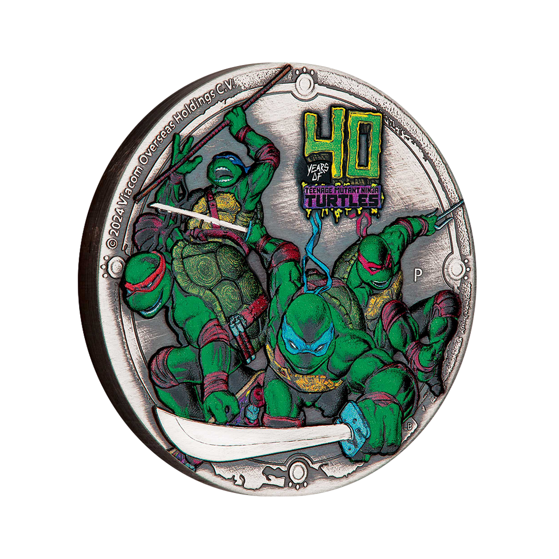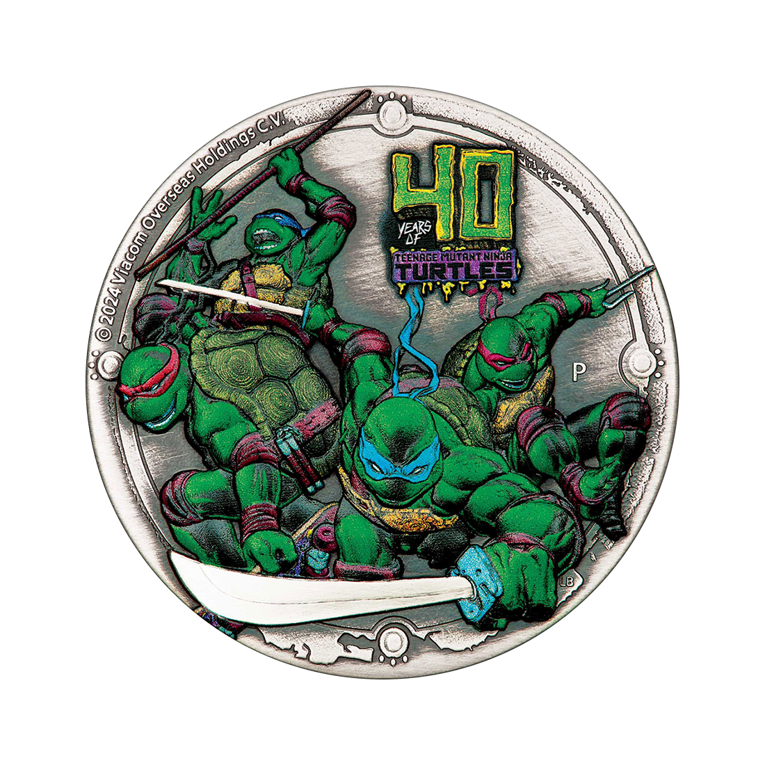 Appearance of the 2024 Teenage Mutant Ninja Turtles 40th Ann. 2 oz Silver Antiqued Coin - 24h Shipping!