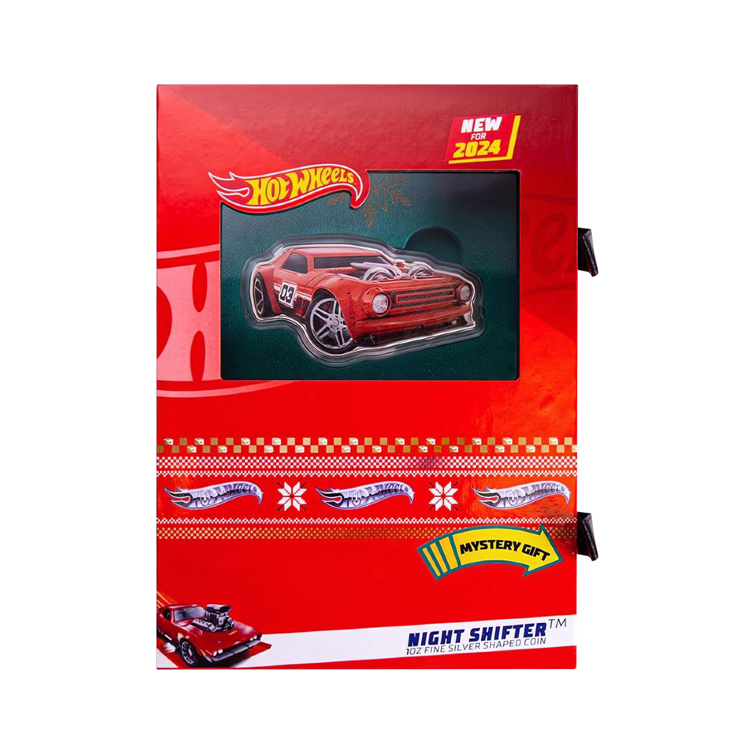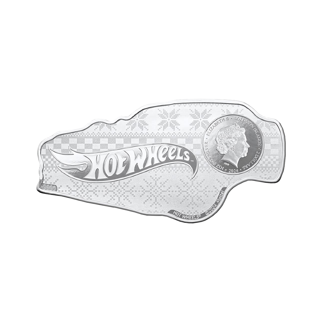 The 2024 coin, minted by PAMP Suisse on behalf of the Solomon Islands, is a unique piece dedicated to the iconic Hot Wheels model. It is made from one ounce of pure silver and has a unique shape replicating the silhouette of the Night Shifter car. The coin is limited to 3,000 pieces worldwide, making it a valuable acquisition for collectors and car enthusiasts. Each piece is delivered in a specially designed case, reminiscent of classic Hot Wheels packaging, along with a certificate of authenticity. Each box contains one of four special commemorative "OG" Hot Wheels™ pins.