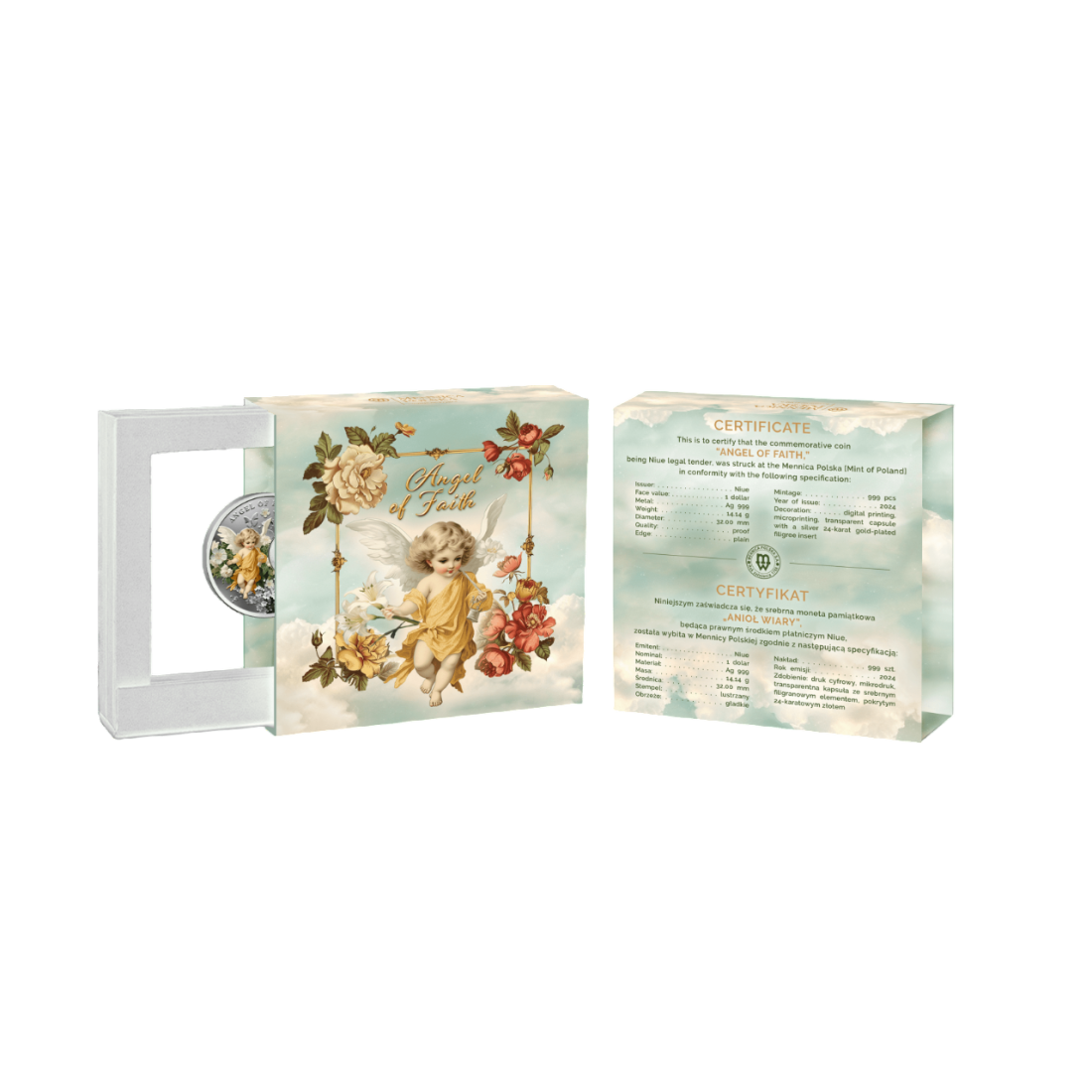 The Silver Angel of Faith Coin is a harmonious combination of investment value, artistic craftsmanship, and deep symbolism. Its purchase is not only an investment in precious metal but also in a work of art that may appreciate over time. Whether you are an experienced collector or someone looking for a unique gift for a loved one, the Silver Angel of Faith will meet your expectations, combining beauty with lasting value.