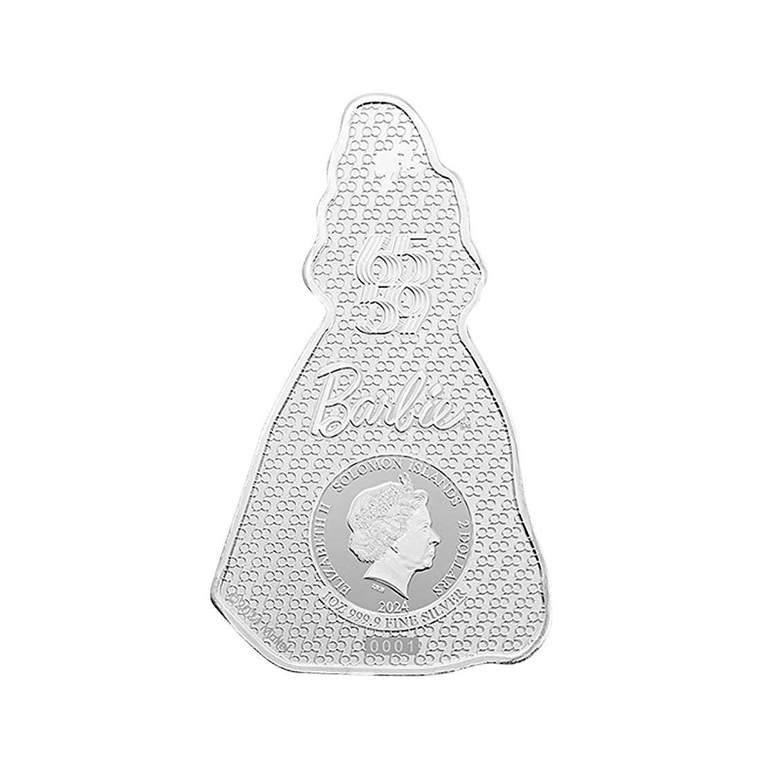 A beautiful numismatic piece with a unique shape, commemorating the 65th anniversary of a pop culture icon. The reverse of the coin features the doll with long blonde hair, dressed in an elegant gown, one of the iconic designs in the series. Complementing the classic elegance, the styling also includes long black gloves, sunglasses, and sparkling earrings. The obverse of the coin depicts the coat of arms of the Solomon Islands, the coin's denomination, and the year of issue. Its background is subdued, with delicate decorations and inscriptions about the Barbie series and its anniversary. The coin is available in a limited edition of 3,000 pieces worldwide, making it highly sought after by collectors. The elegant box included with it perfectly emphasizes its collectible value and ensures that this unique product will be admired for years.