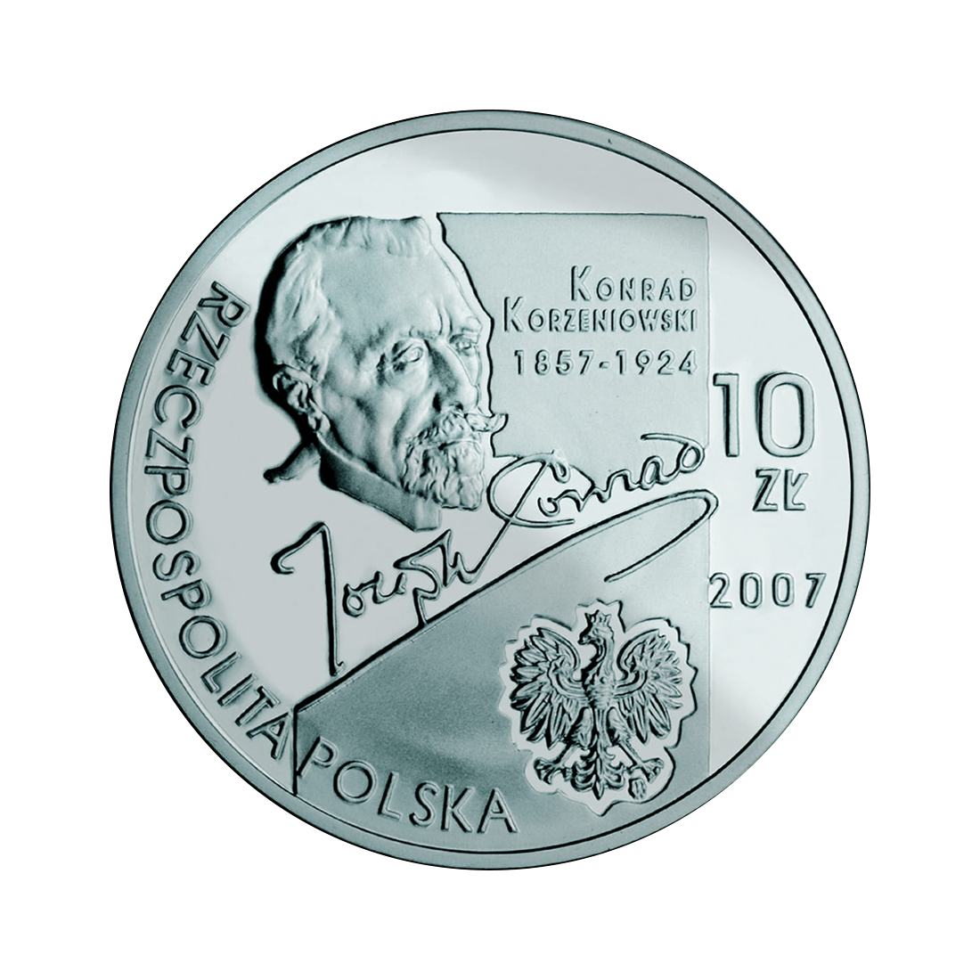 The collector's coin, issued by the National Bank of Poland in 2007, was created to commemorate the memory of the Polish-born English writer and publicist, Joseph Conrad Korzeniowski (1857–1924). It was designed by Robert Kotowicz, and its quality of execution and the use of holographic technology make it appreciated by both collectors and literature enthusiasts. This issue is part of a series of coins dedicated to outstanding Poles, aimed at commemorating individuals who have contributed to the development of culture and the strengthening of Poland's positive image worldwide through their work and activities.