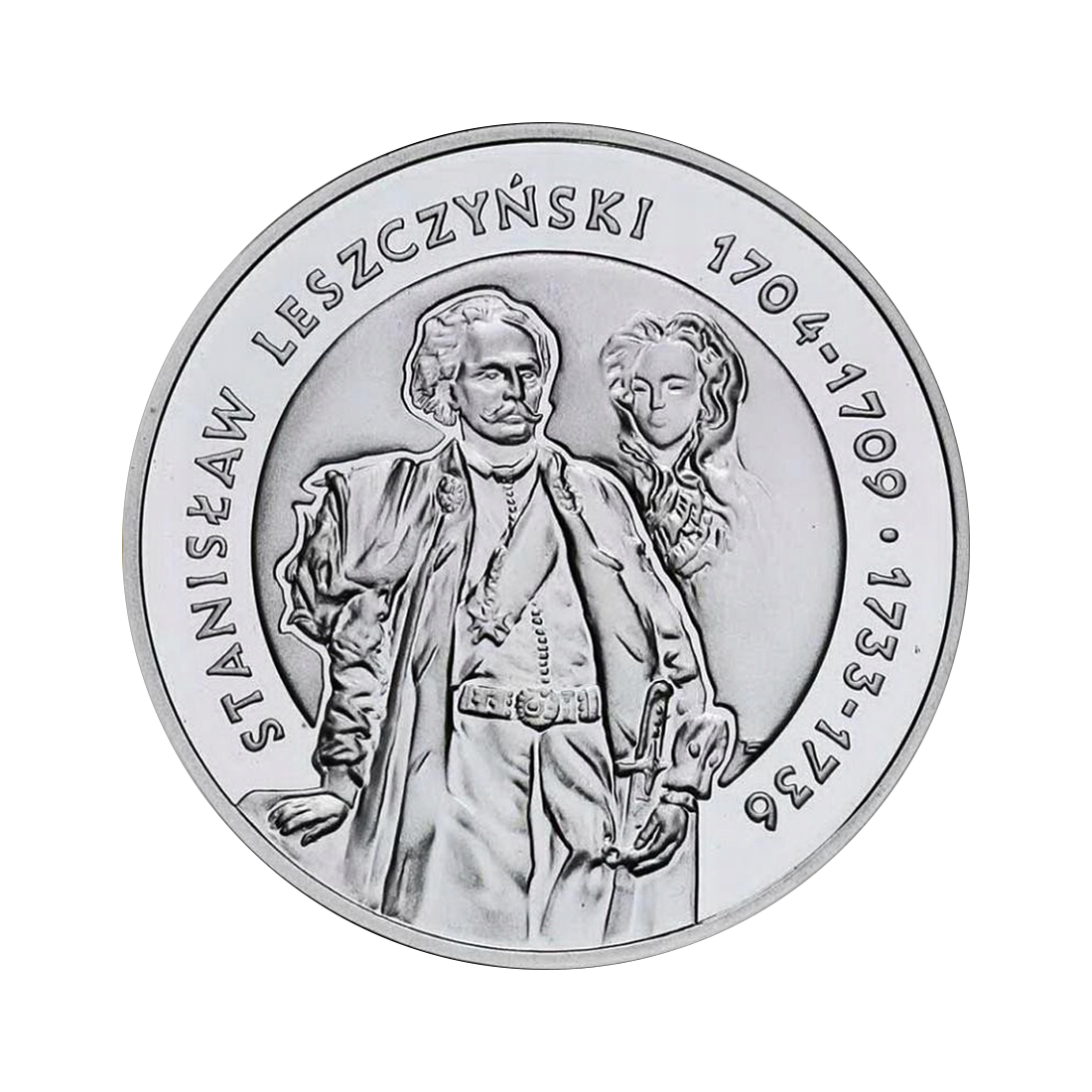 The silver collector's coin with a denomination of 10 zloty stands out for its exquisite craftsmanship and refined artistic composition. Its reverse features Stanisław Leszczyński, depicted in a half-figure, in an elegant outfit with a crown and royal insignia, emphasizing his majesty. In the background, there is a bust of his daughter Maria, Queen of France. Surrounding the main motif is the inscription STANISŁAW LESZCZYŃSKI, along with the dates of his reign, recalling his turbulent yet significant role in the history of the Polish-Lithuanian Commonwealth. The obverse features the Polish coat of arms, along with the denomination and year of issue. The design by Ewa Tyc-Karpińska impresses with a subtle combination of mirror finish and delicate matting, which perfectly highlights the details and gives the coin elegance and artistic depth.