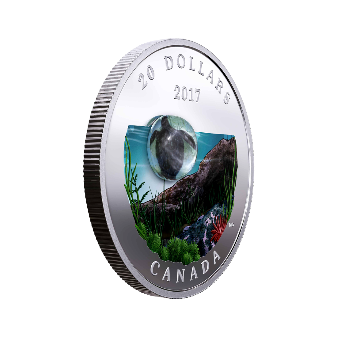 The third and final coin in the Underwater World series, minted in 2017 by The Royal Canadian Mint. It is made from one ounce of pure silver, has a denomination of $20, and its mintage is limited to 7,500 pieces. It was minted in proof standard, which means it has a mirror background and matte reliefs, highlighting the details of the design. The coin depicts an underwater landscape off the coast of Canada, showcasing the diversity of marine life, with a special emphasis on the sea turtle. It is not only a valuable acquisition for collectors but also an expression of appreciation for the richness of Canadian marine ecosystems and their unique inhabitants.