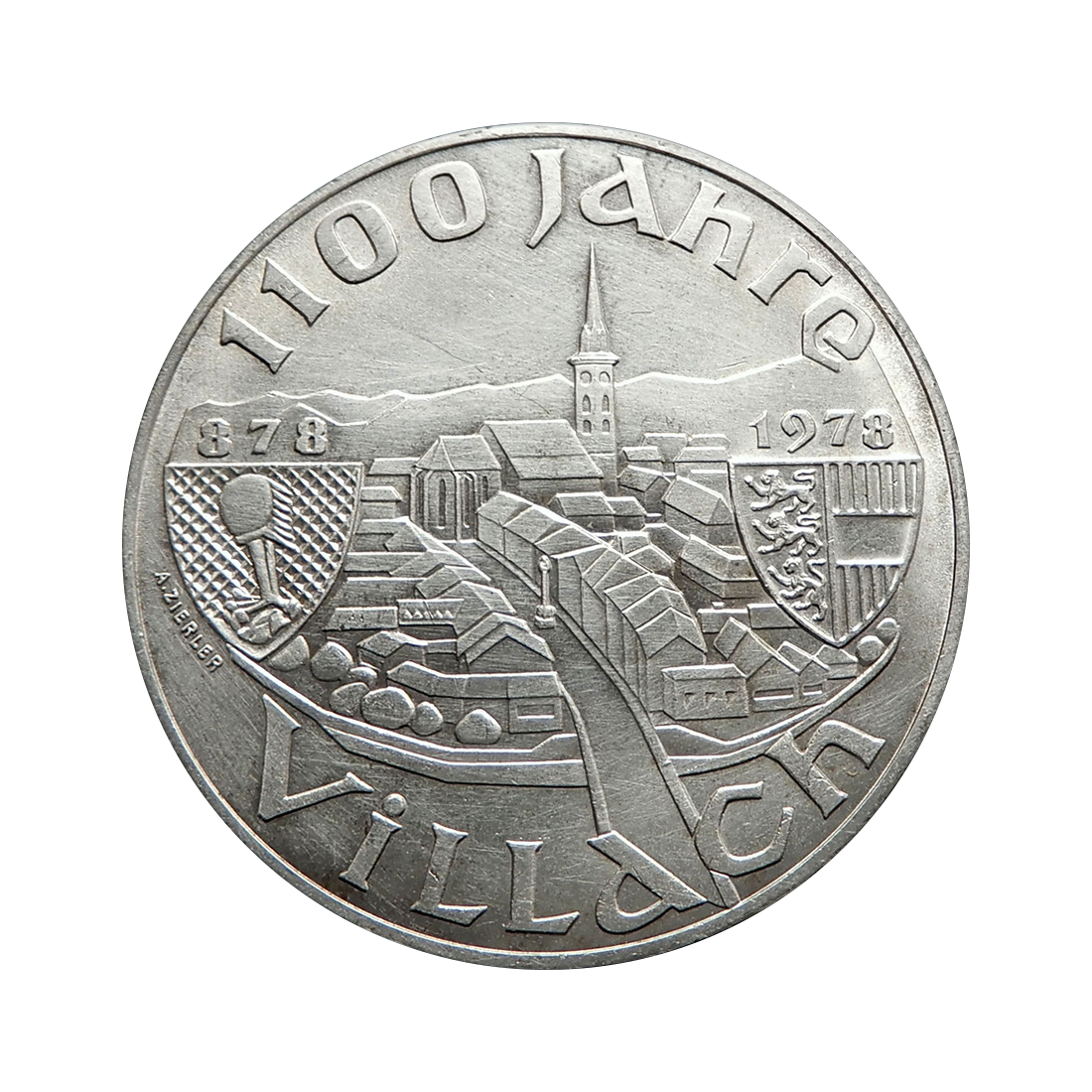 In 1978, on the occasion of the 1100th anniversary of the first historical mention of Villach, the Austrian National Bank issued a commemorative coin with a face value of 100 schillings. It was intended to honor the long and rich history of the city and its contribution to the development of Carinthia and all of Austria.